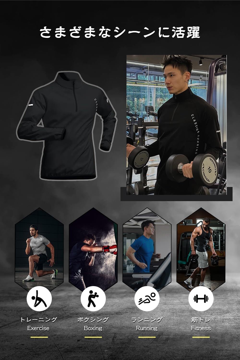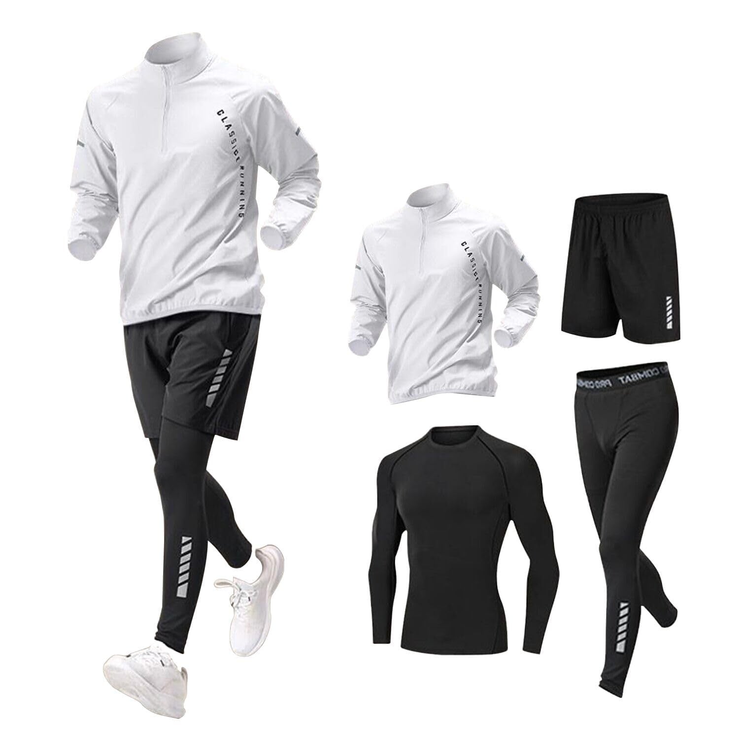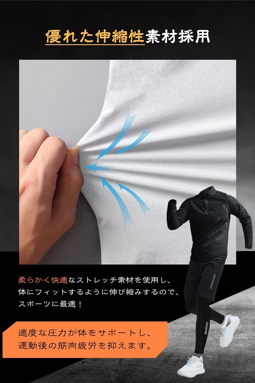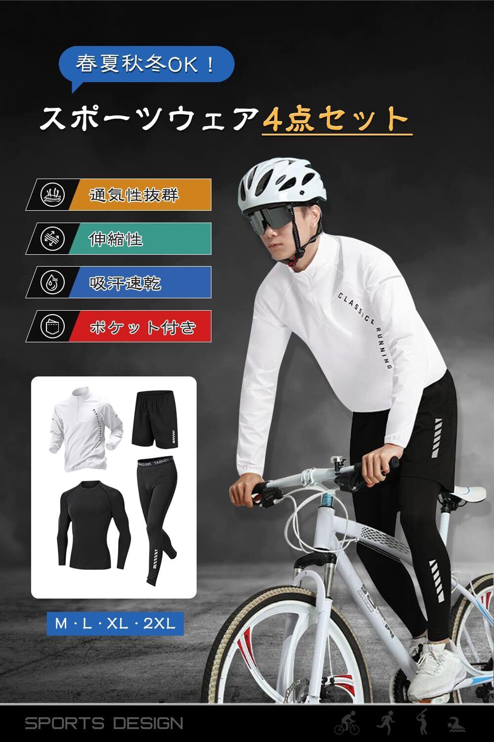 【4点セット 自由に組み合わせ】長袖&スポーツジャケット&ハーフパンツ&タイツの上下4点がそろうスポーツセット!半袖、長袖、スポーツジャケッで多彩なスタイルが楽しめ、あらゆるシーンで魅力的に演出。好みや天気に応じて自由に組み合わせ可能。春から冬まで長く愛用できる一品です。