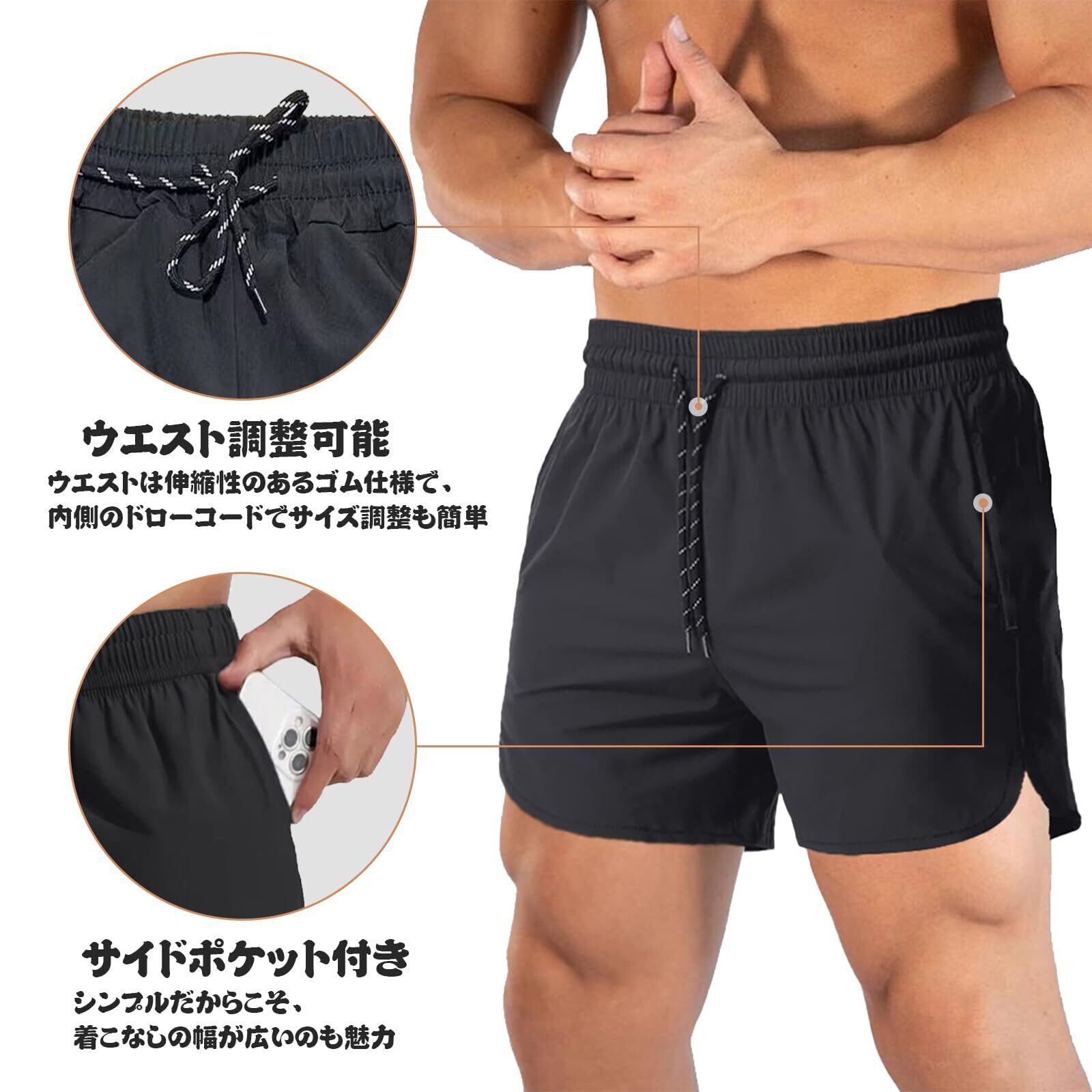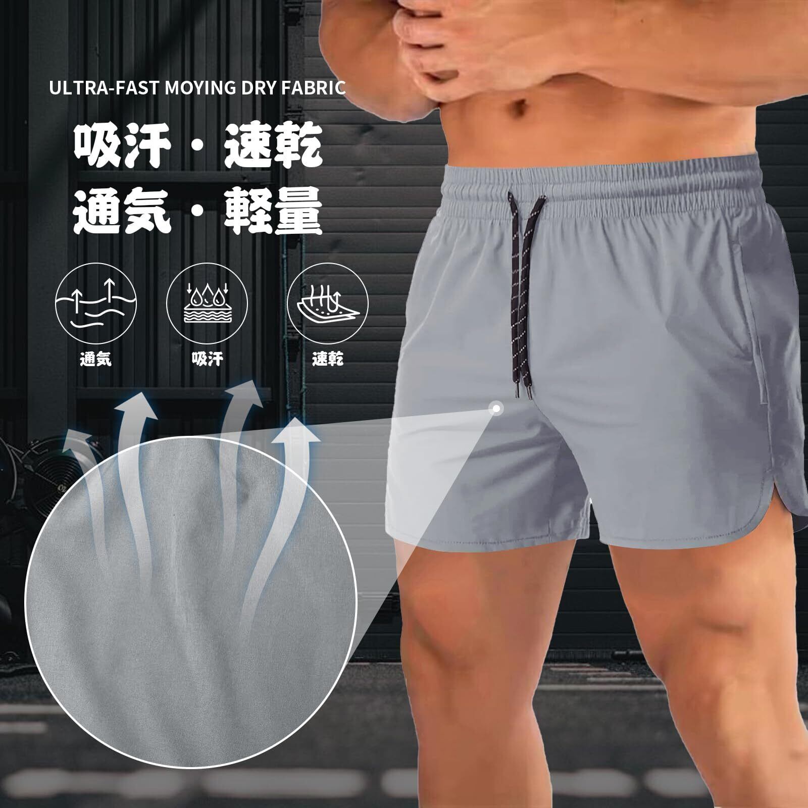 [Manatsulife] メンズ ショットパンツ 短パン ジム 筋トレ スポーツパンツ 無地 普段着 吸汗速乾 通気 軽量 三分丈 ハーフパンツ 夏 DK18