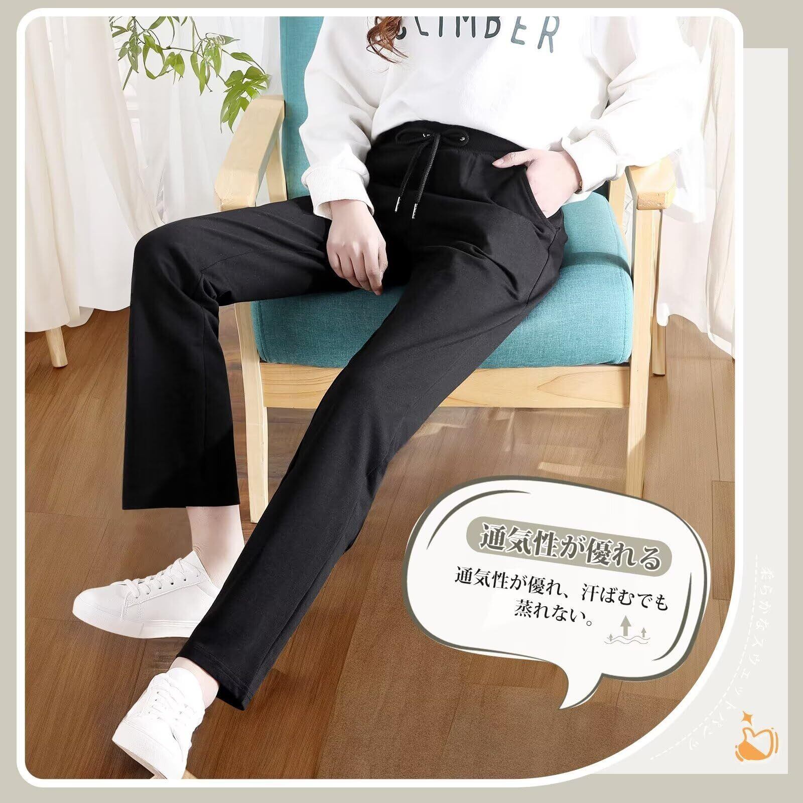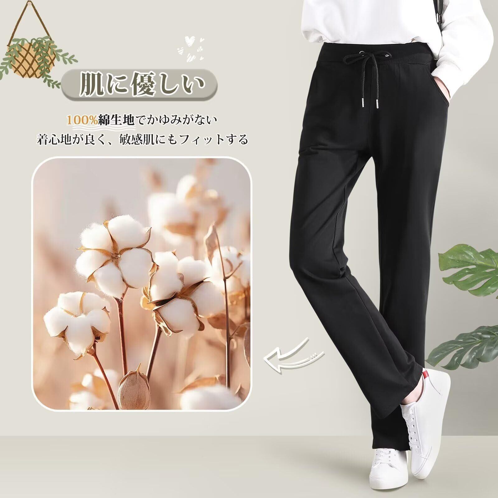 【綿100%素材】通気性、吸水性が優れる綿素材を使って、柔らかく、肌に優しいです。軽い着心地で敏感肌さんにもフィットです。静電気が起きにくく、毛玉になりにくいロングパンツです。