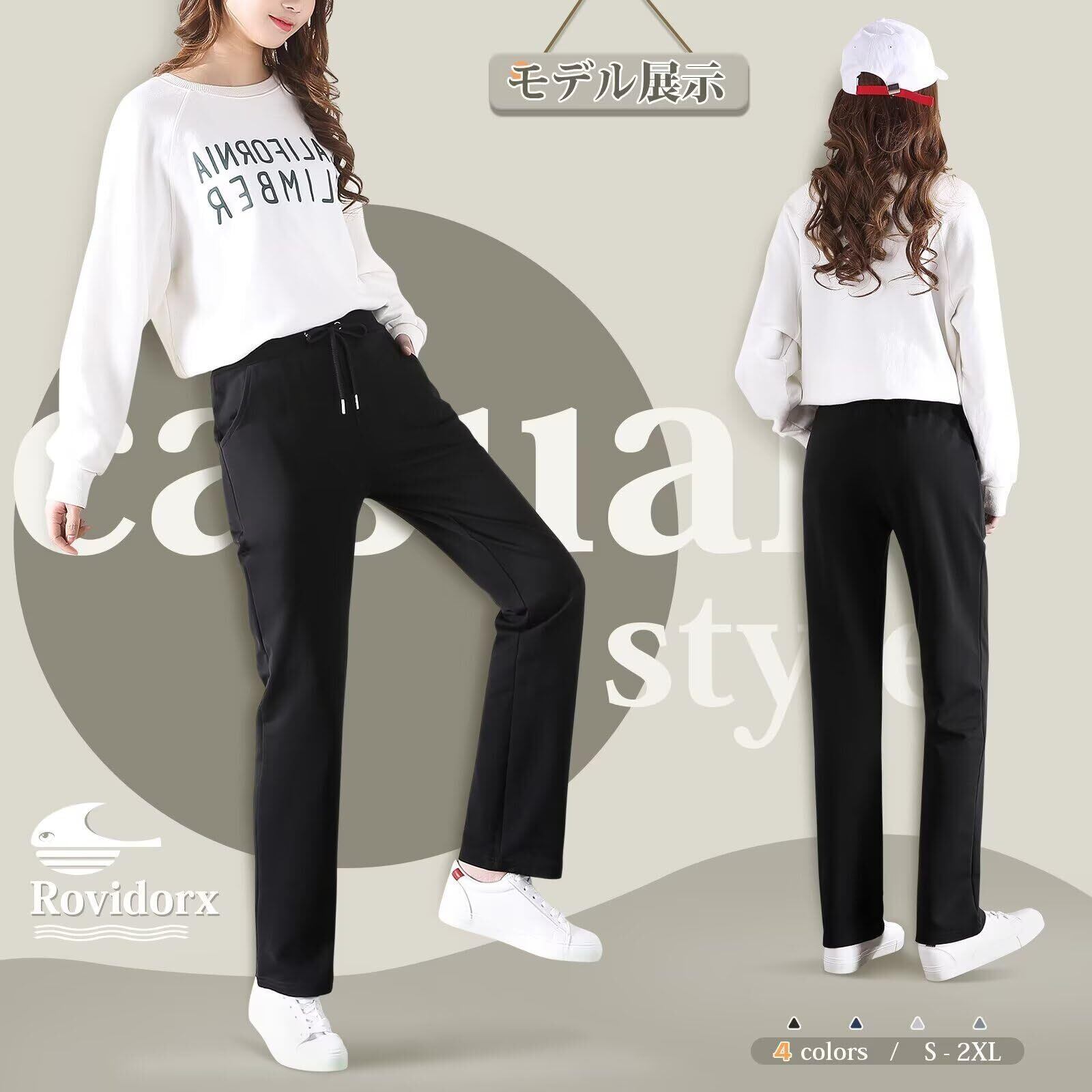 【2022最新】[Rovidorx] スウェットパンツ レディース 綿100 ズボン ロングパンツ ボトムス ワイドパンツ カジュアル 美脚 無地 春秋 ポケット付き 体型カバー | 無意味ステッカー