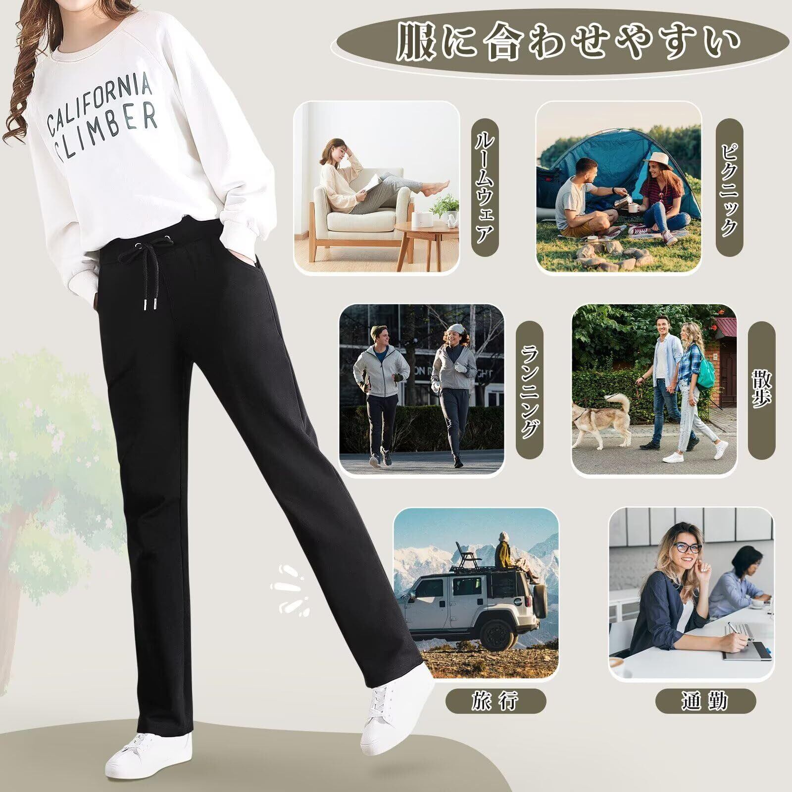 [Rovidorx] スウェットパンツ レディース 綿100 ズボン ロングパンツ ボトムス ワイドパンツ カジュアル 美脚 無地 春秋 ポケット付き 体型カバー