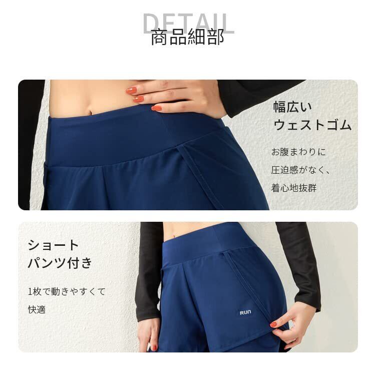 【パンツ付き一体型】スポーツ・フィットネス・ヨガに最適なショートパンツ一体型レギンスです。一体型なので重ね着やコーデを考える必要がなく、トップスを合わせるだけで簡単にトータルコーデが完成します。ショートパンツがヒップラインをカバーしてくれるので、ジムで運動をしたいけどおしりや太もも周り、生足は出したくないなんて方にもおすすめです。