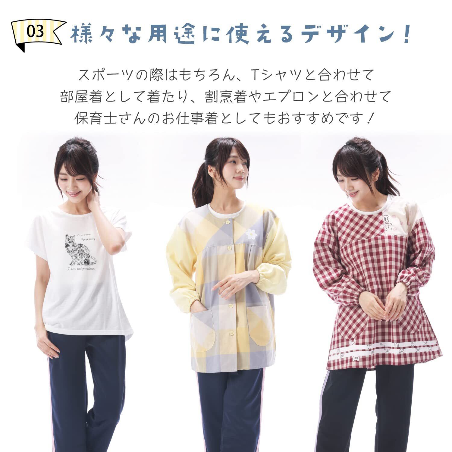 【様々な用途に使えるデザイン!】スポーツの際はもちろん、Tシャツと合わせて部屋着としたり、割烹着やエプロンと合わせて保育士さんのお仕事着としてもおすすめです!ウエストは紐で調節可能です。両サイドに便利なポケット付き。
