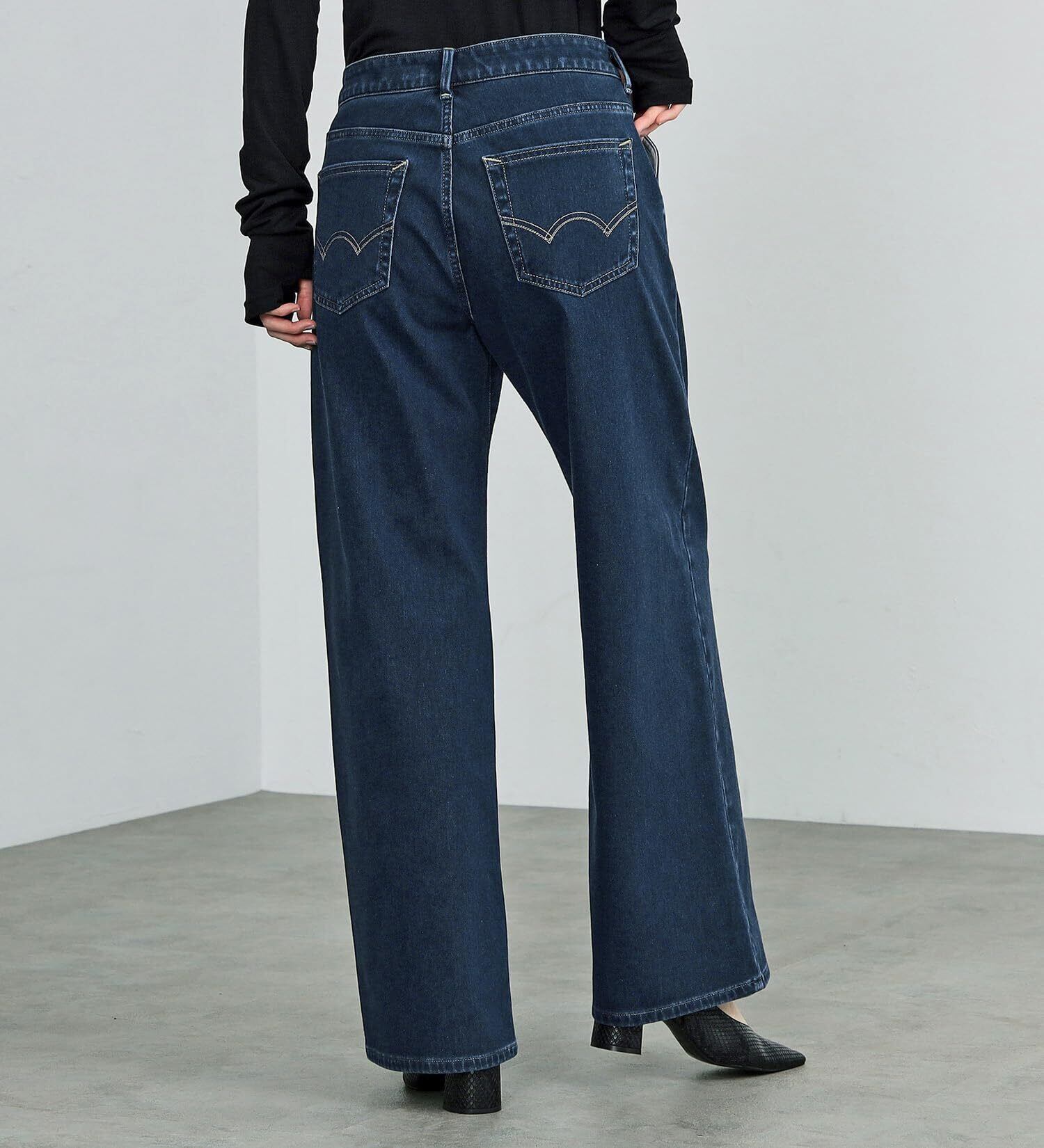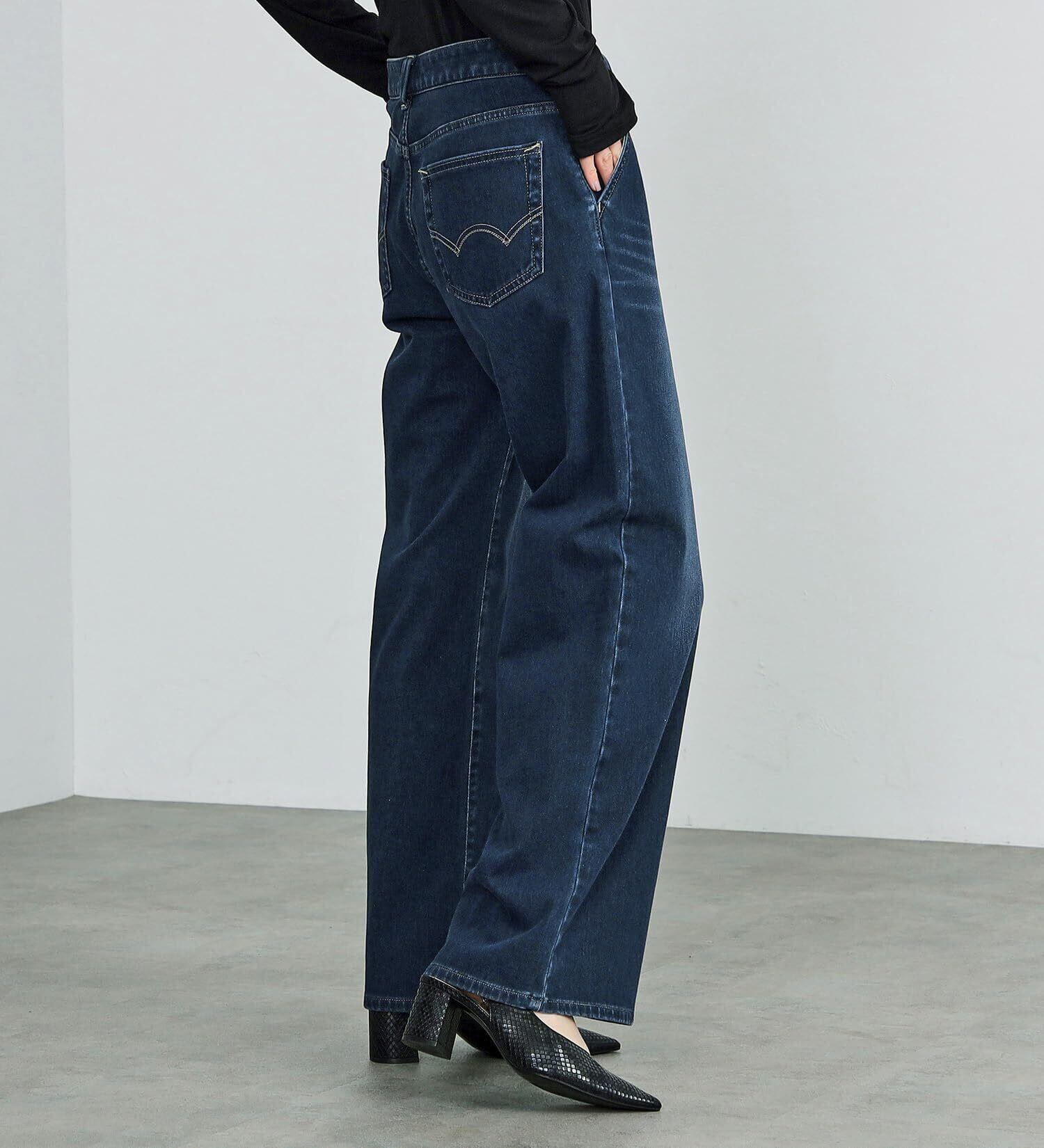 見た目はまるで本格的なデニム。でも実はニット素材。よく伸びてよく戻る生地を採用。
