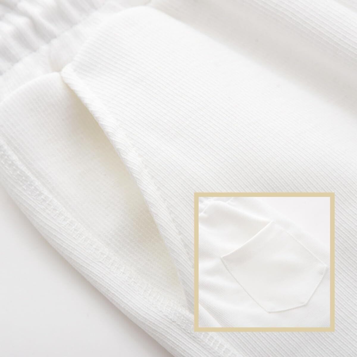 ポケット付きで便利に小物の収納ができます。伸びのあるリブ編みのウエストと裾が、より快適な着用感をもたらします。