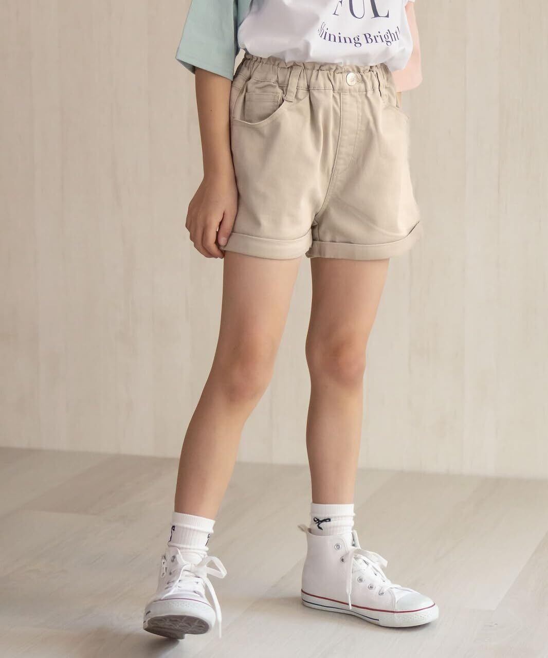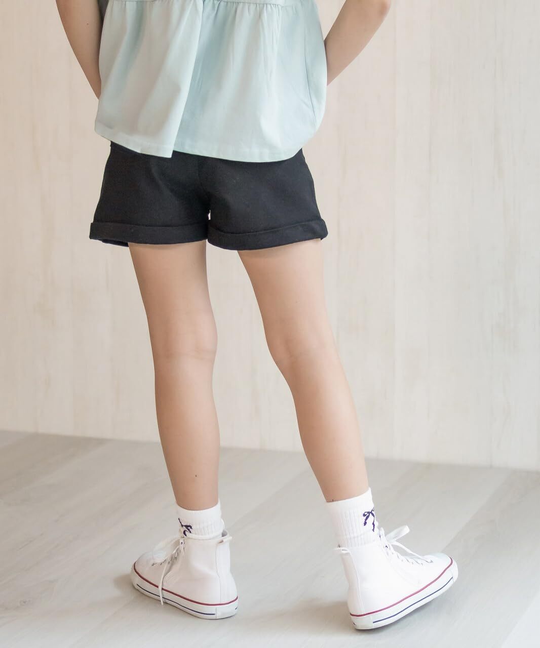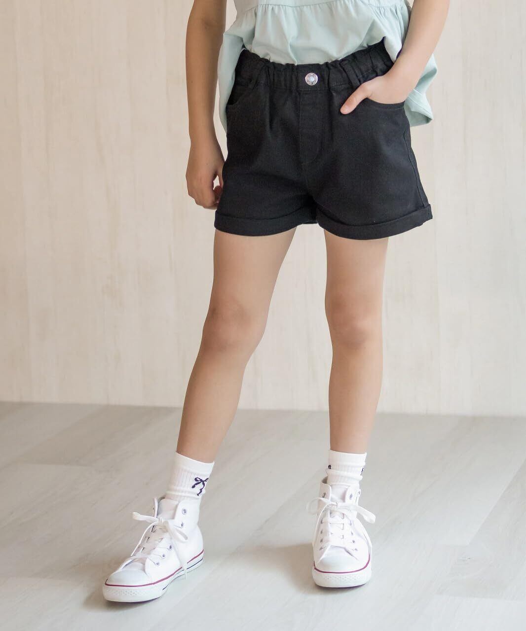 [NAVY] [ネイビー] のびるモン ショートパンツ 子供服 女の子 キッズ ストレッチ ウエストゴム ツイルパンツ ボトムス