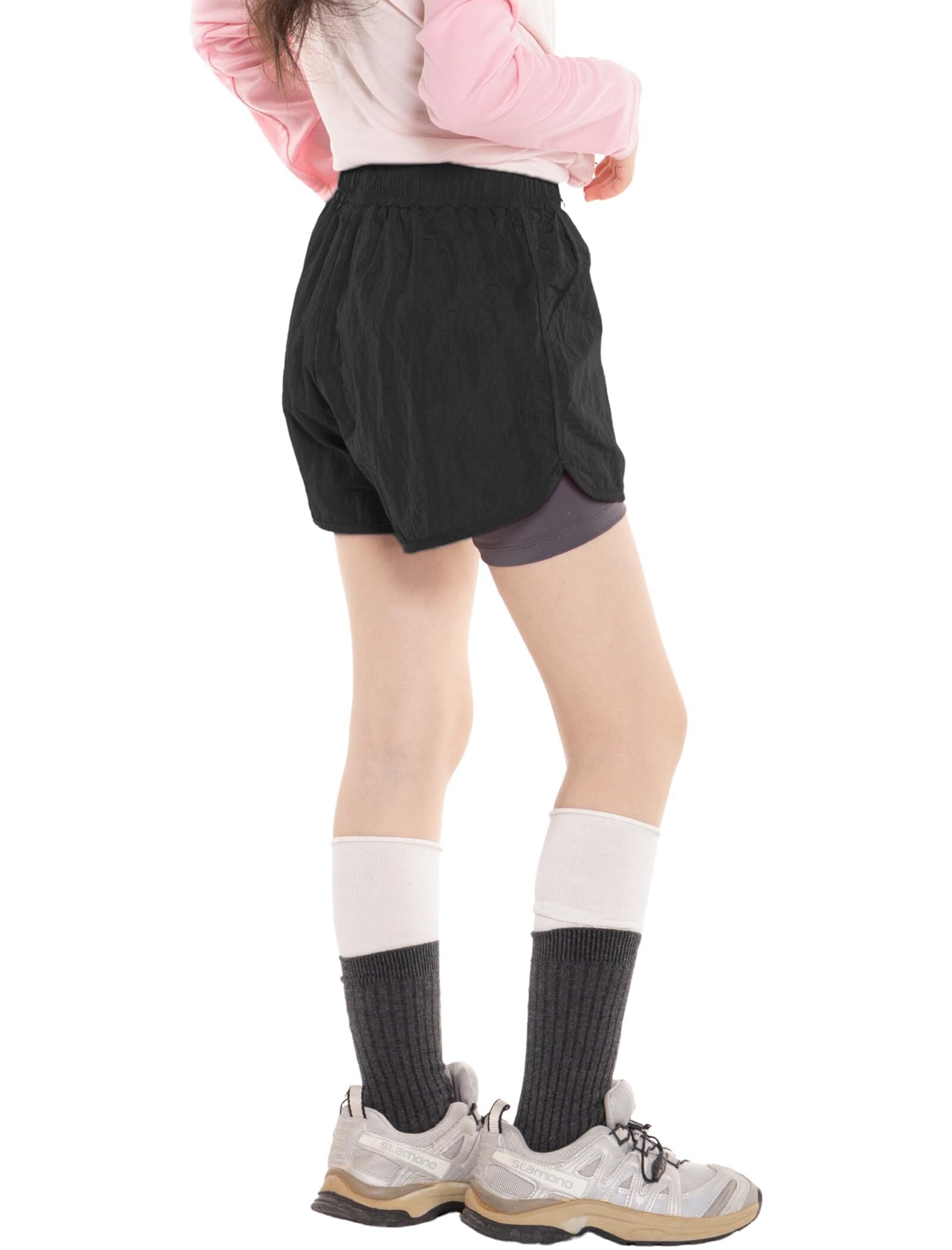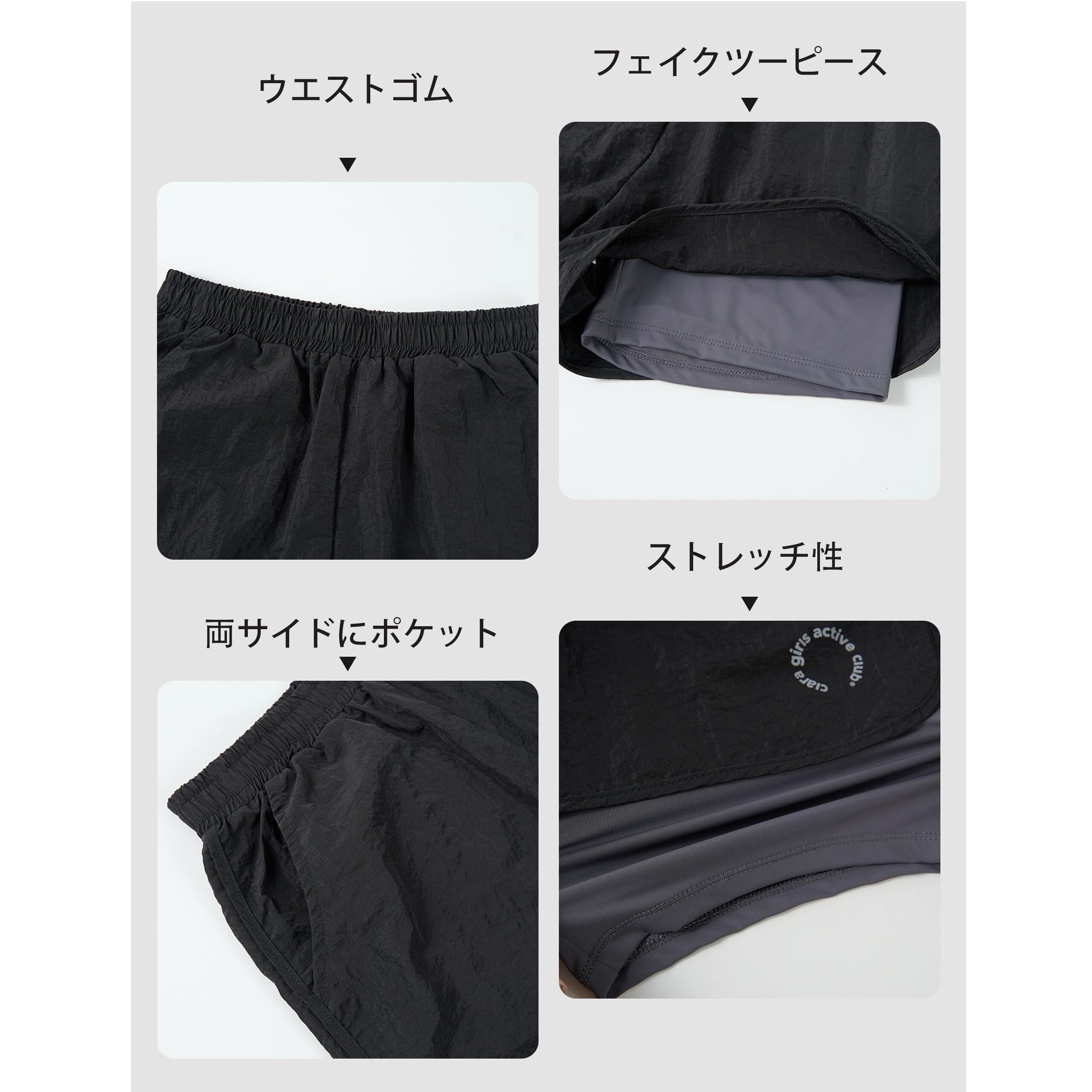 【デザイン】外は半ズボン、内はスパッツの2層構造デザインなので透け防止、ポケットも使え便利です。