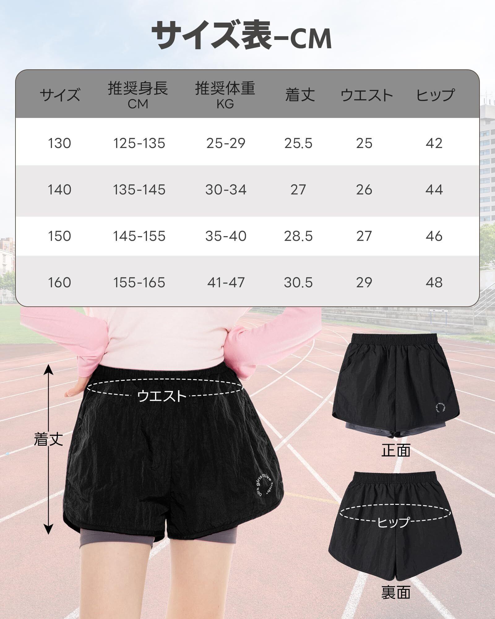 [Rolanko] キッズ ハーフパンツ 女の子 半ズボン フェイクツーピース ガールズ 短パン 軽量速乾 スポーツ 体操服 130-160