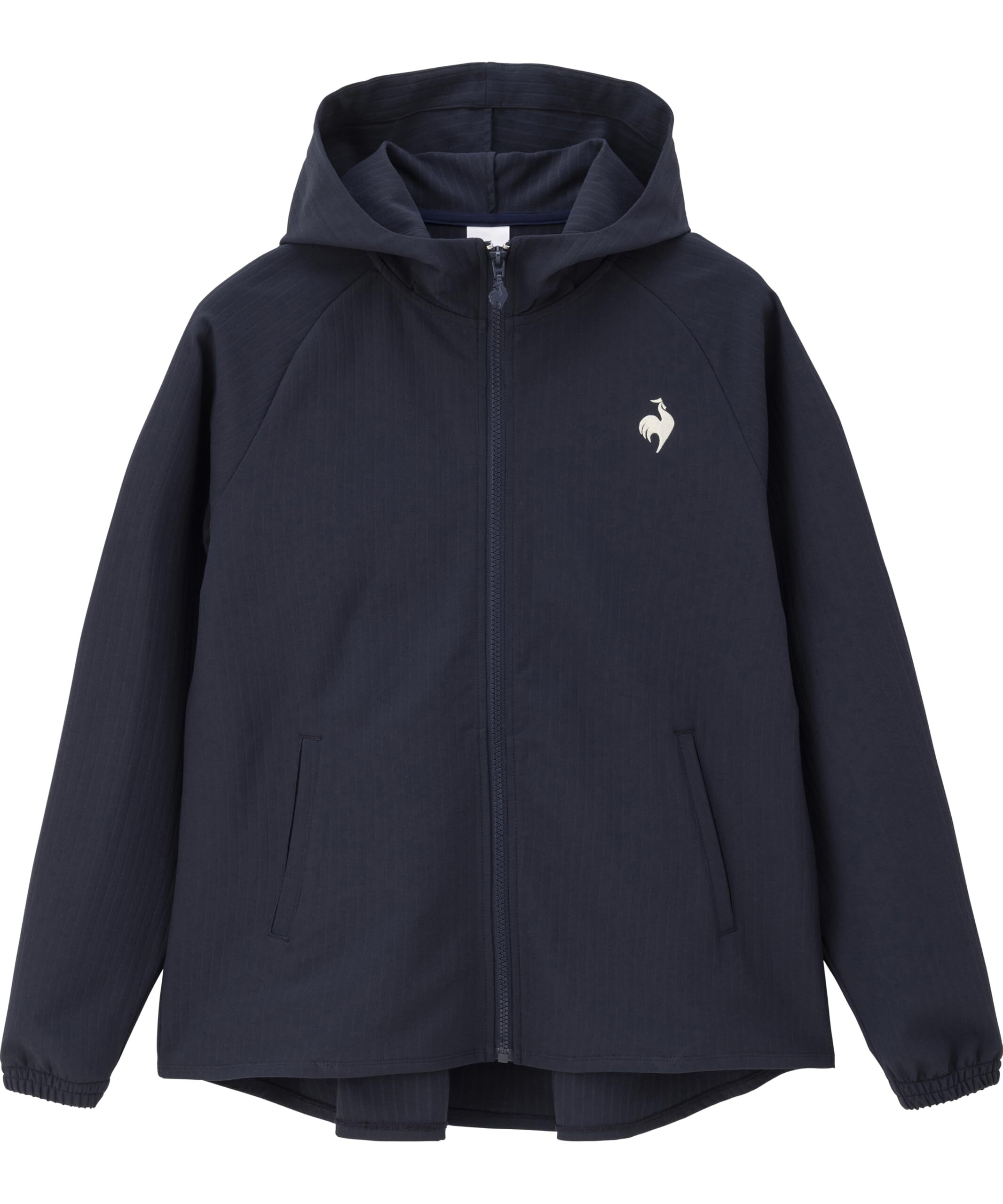 ■素材/さらりが続く肌面ドライ機能を持った新規クロス素材です。鳥の羽根のような軽量感も特徴。汗ばむ季節には汗によるべとつきを軽減、冷え込む季節には汗冷えを軽減してくれる機能があります。■デザイン・機能/tennisをコンセプトにしたデザインをあしらったフルジップフードジャケットです。表面のリブ調の凹凸がオリジナリティあふれる素材感になっております。後ろ身頃にプリーツが入っているので、フレア感ある女性らしいシルエットになっております。