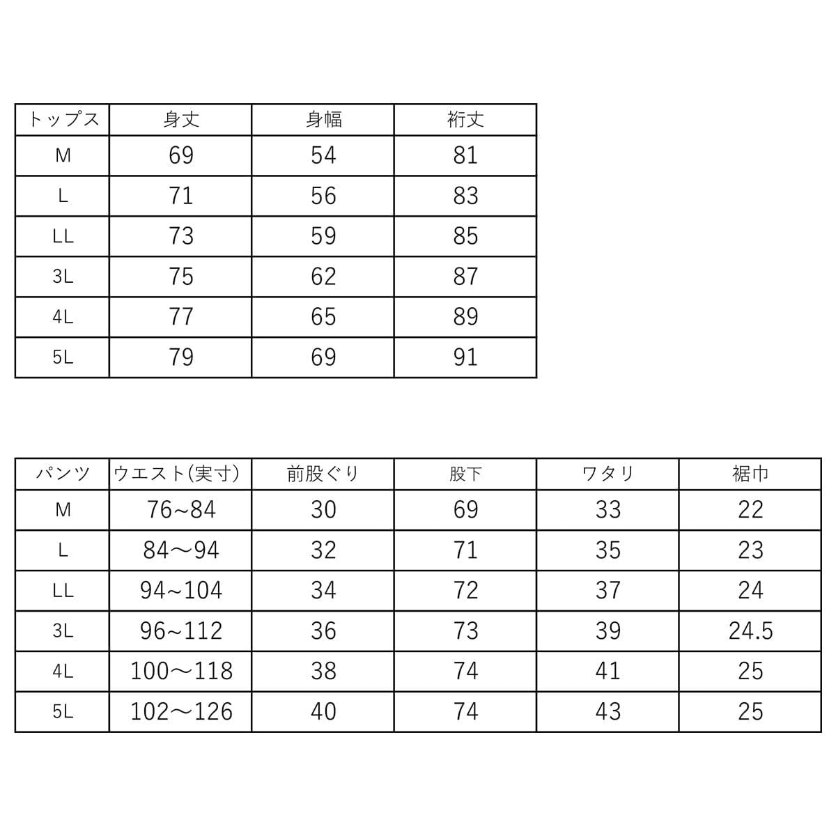 ウエスト目安: [3L]104-114cm / [4L]114-124cm / [5L]118-130cm