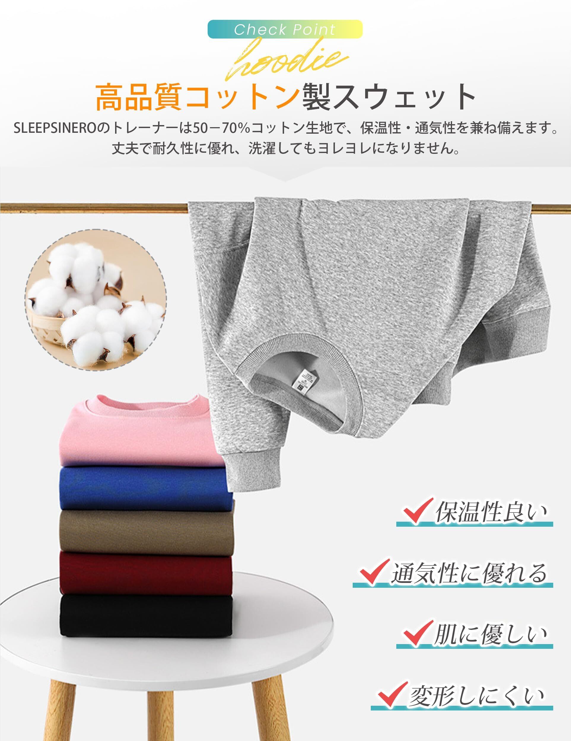 [SLEEPSINERO] トレーナー メンズ スウェット 冬服 【ゆったり体型カバー・着痩せ】 大きいサイズ クルーネック 綿 長袖tシャツ カジュアル コットン 無地 パーカー ベーシック おしゃれ 秋冬春 スポーツ 通勤通学 登山