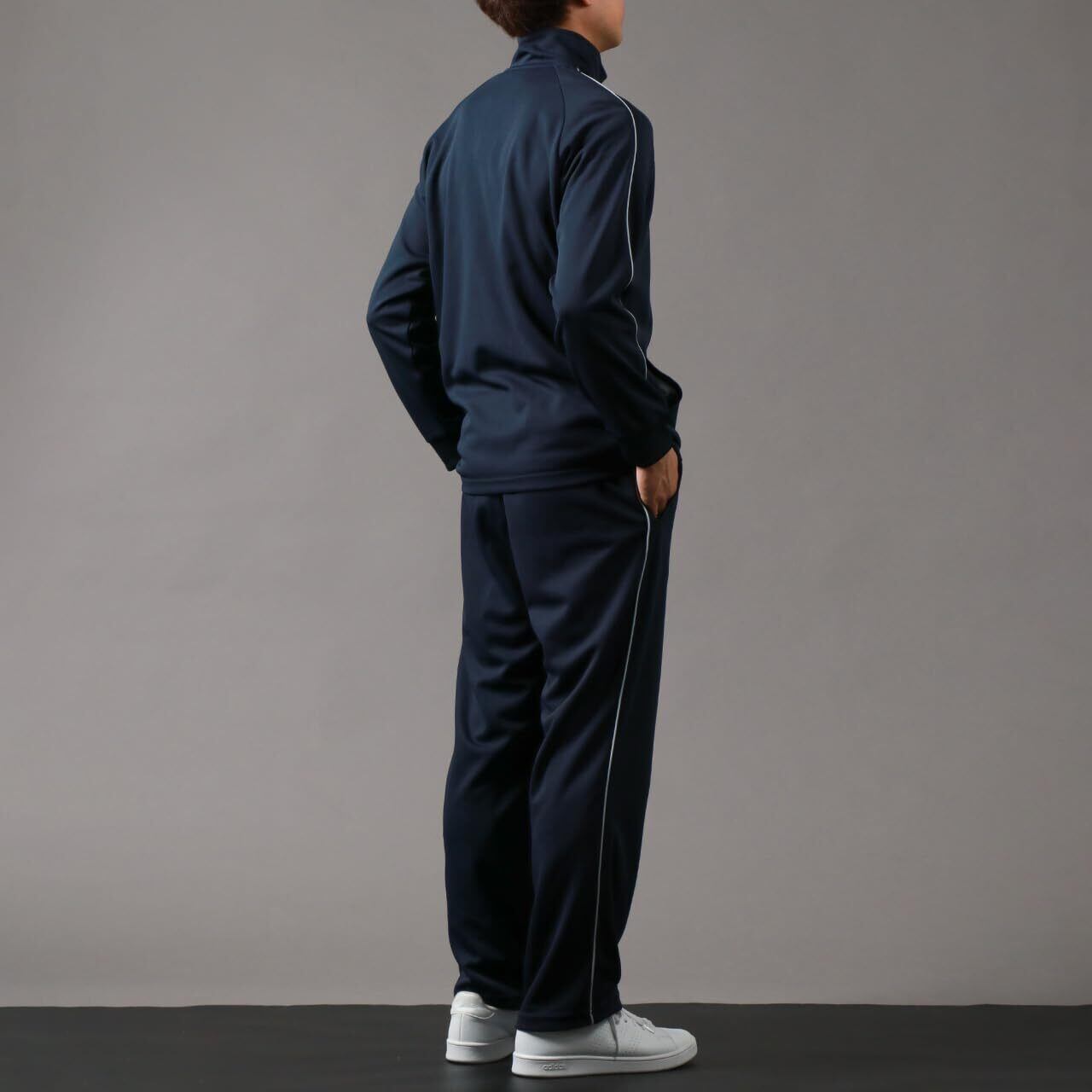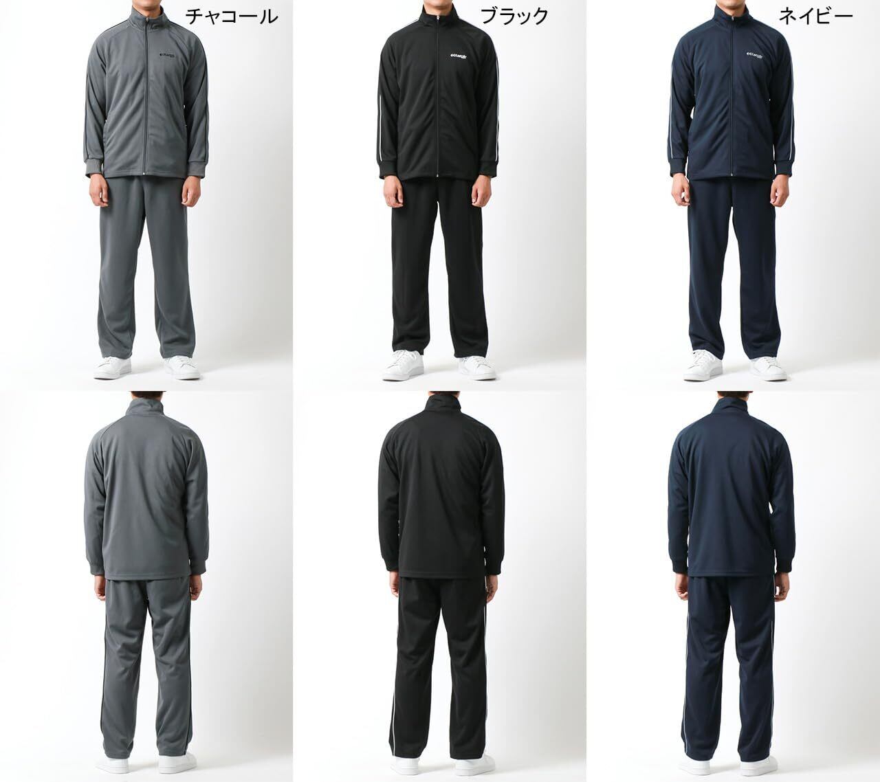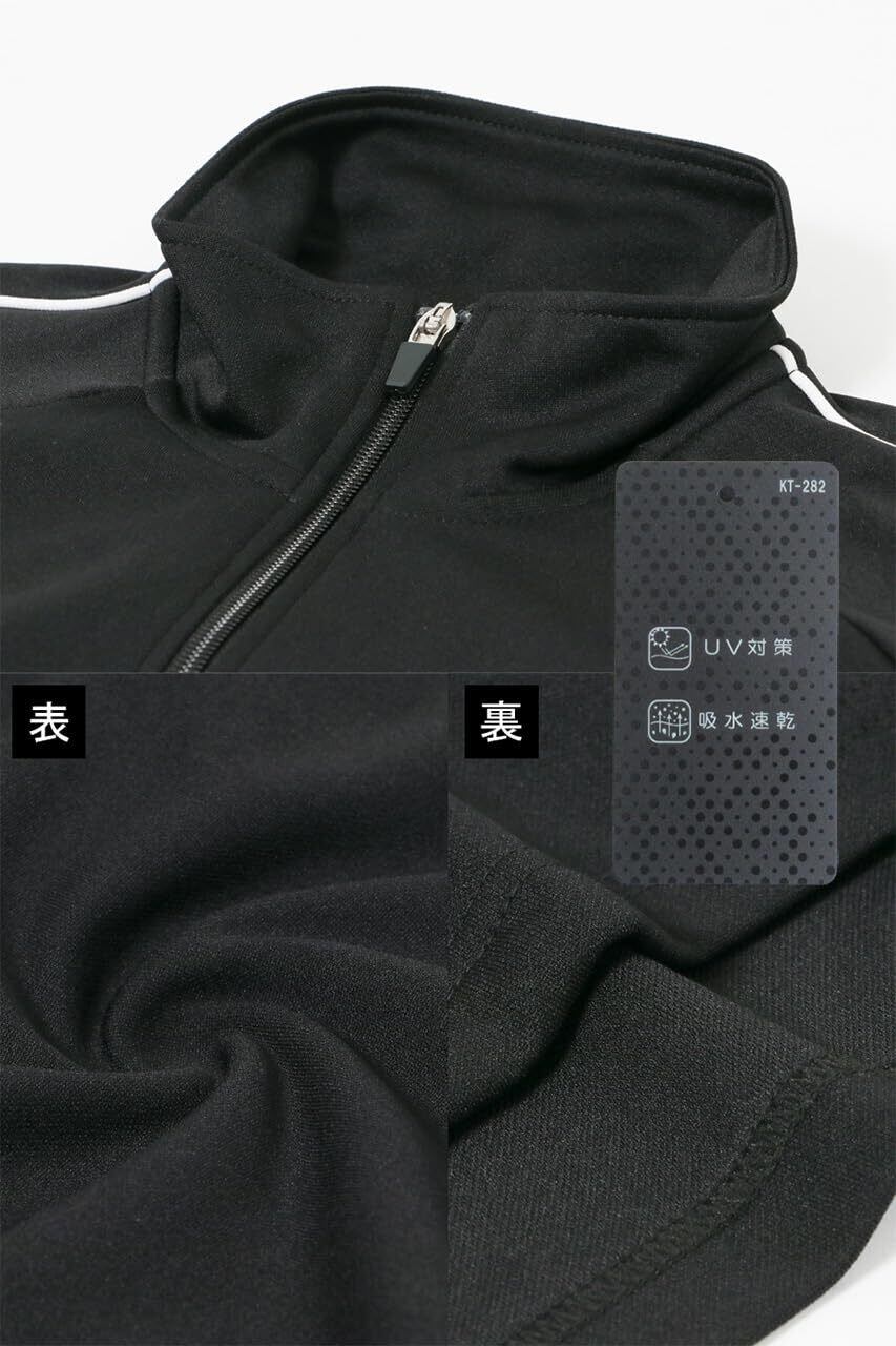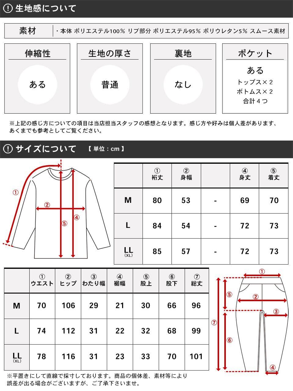 (トップス)・フロント ジッパー ・左胸 刺繍 ・サイド パイピング ・ポケット フロント×2 ・袖口 リブ (ボトムス)・ウエスト ゴム+紐 ・前身左 刺繍 ・サイド パイピング ・ポケット フロント×2 ・吸水速乾 ・UVカット ・モデル 178cm 66kg すべてLサイズ着用しています 。