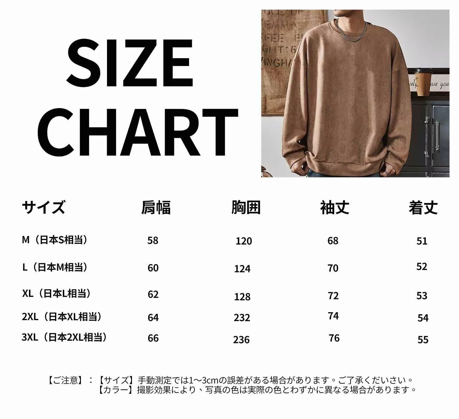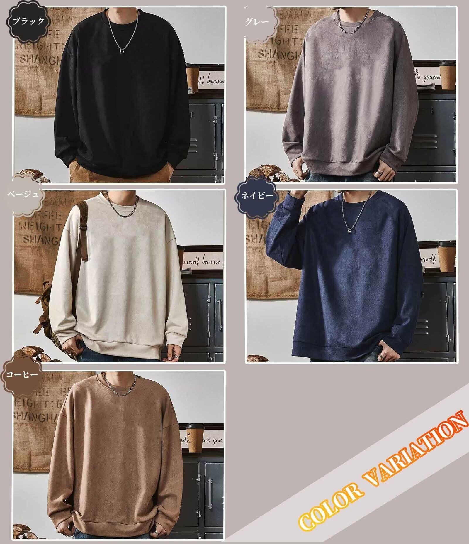 【重要】:M=日本S L=日本M XL=日本L 2XL=日本XL 3XL=日本2XL 【商品紹介】商品名:トレーナー 対応季節:春秋冬 生地:スエード カラー展開:ブラック、グレー、ベージュ、ネイビー、コーヒー サイズ展開:M-3XL モデルのようにゆったりは普段より1-2サイズUPをお勧めします。