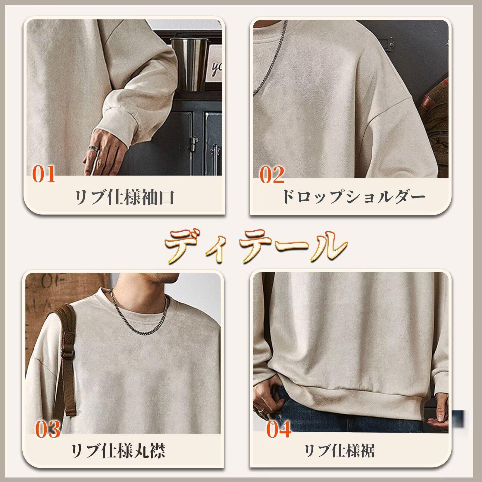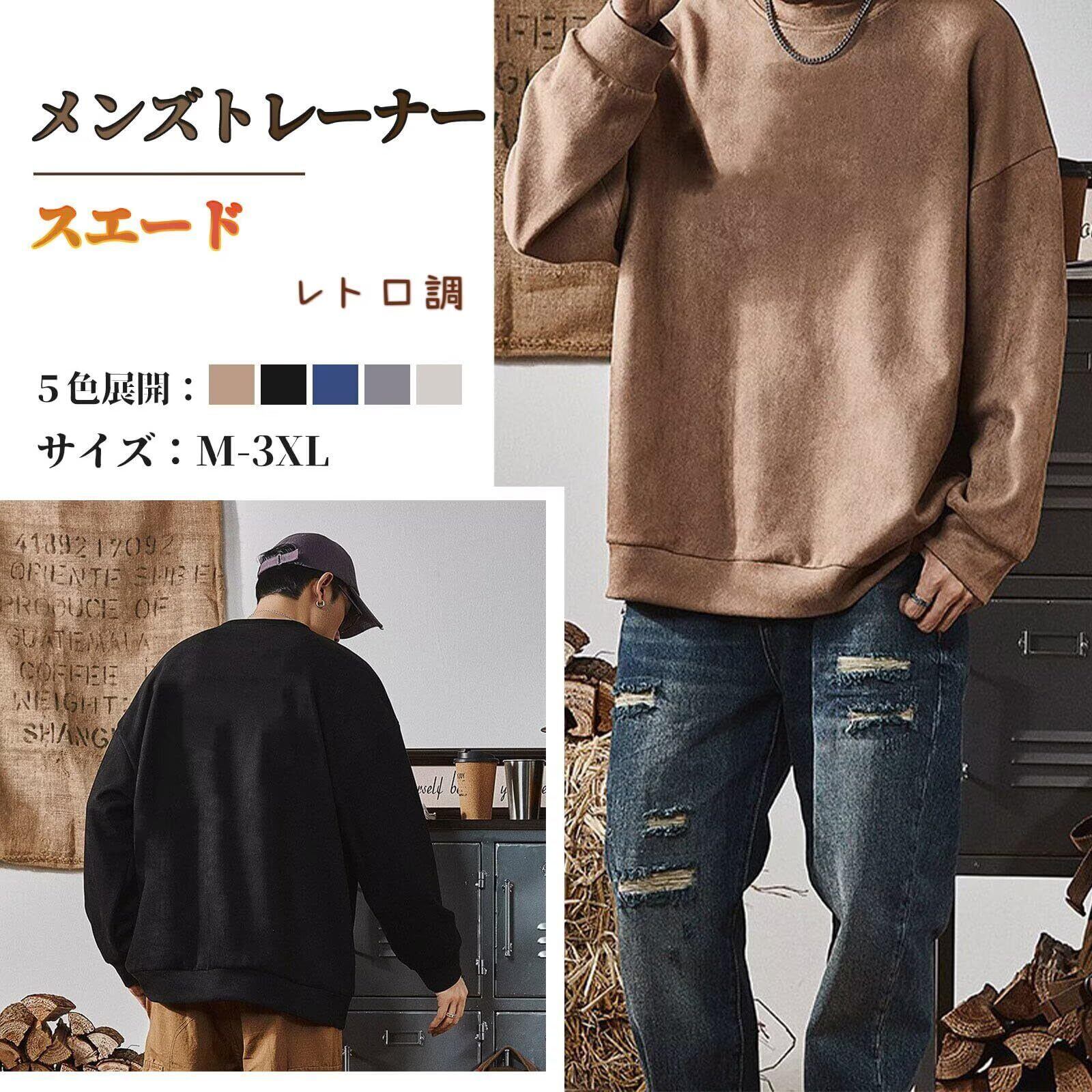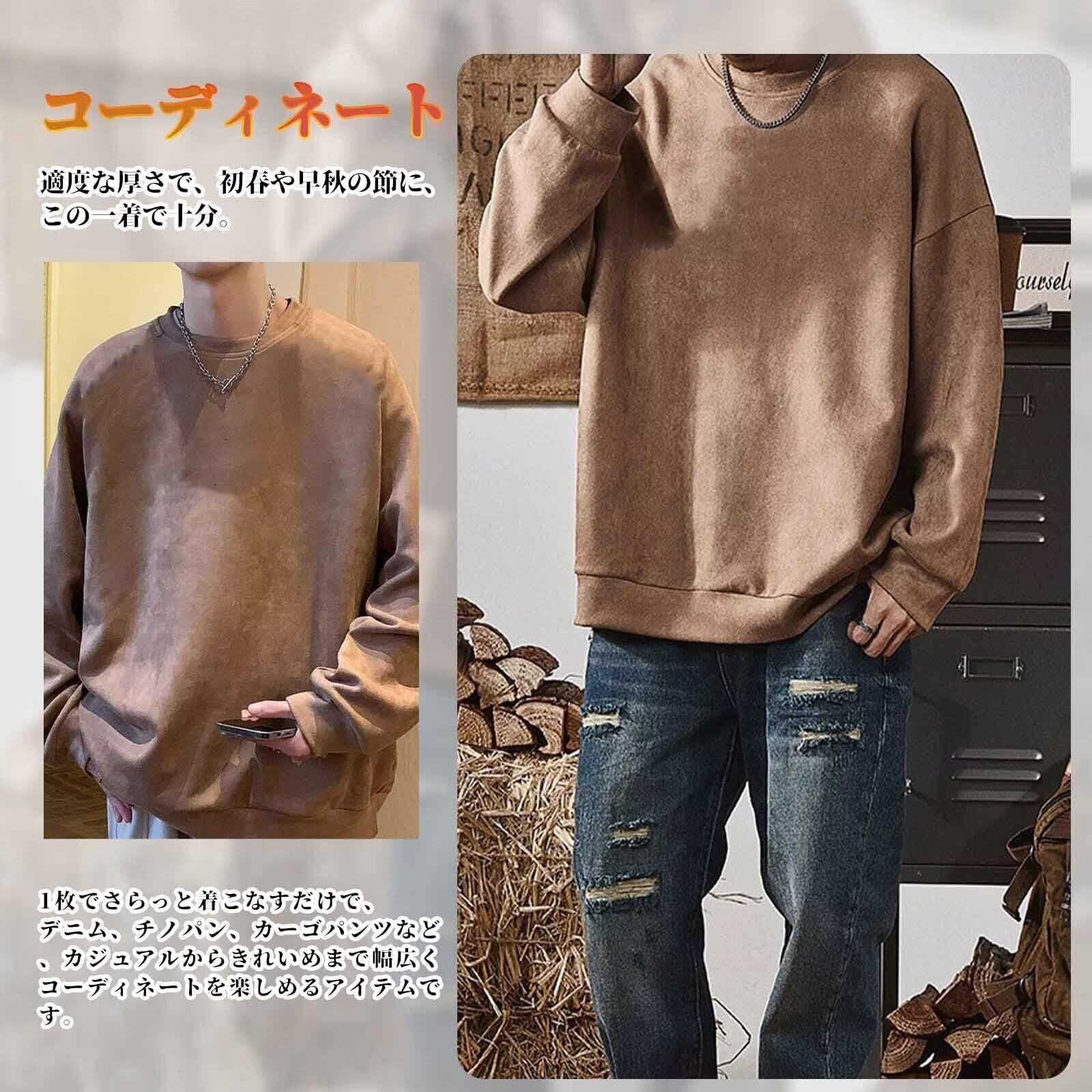 [Yeagio] メンズトレーナー 秋服 スエード ビッグシルエット 無地 トレーナー 大きいサイズ レトロ スウェット プルオーバー ゆったり カジュアル クールネック 冬服 春服 トップス