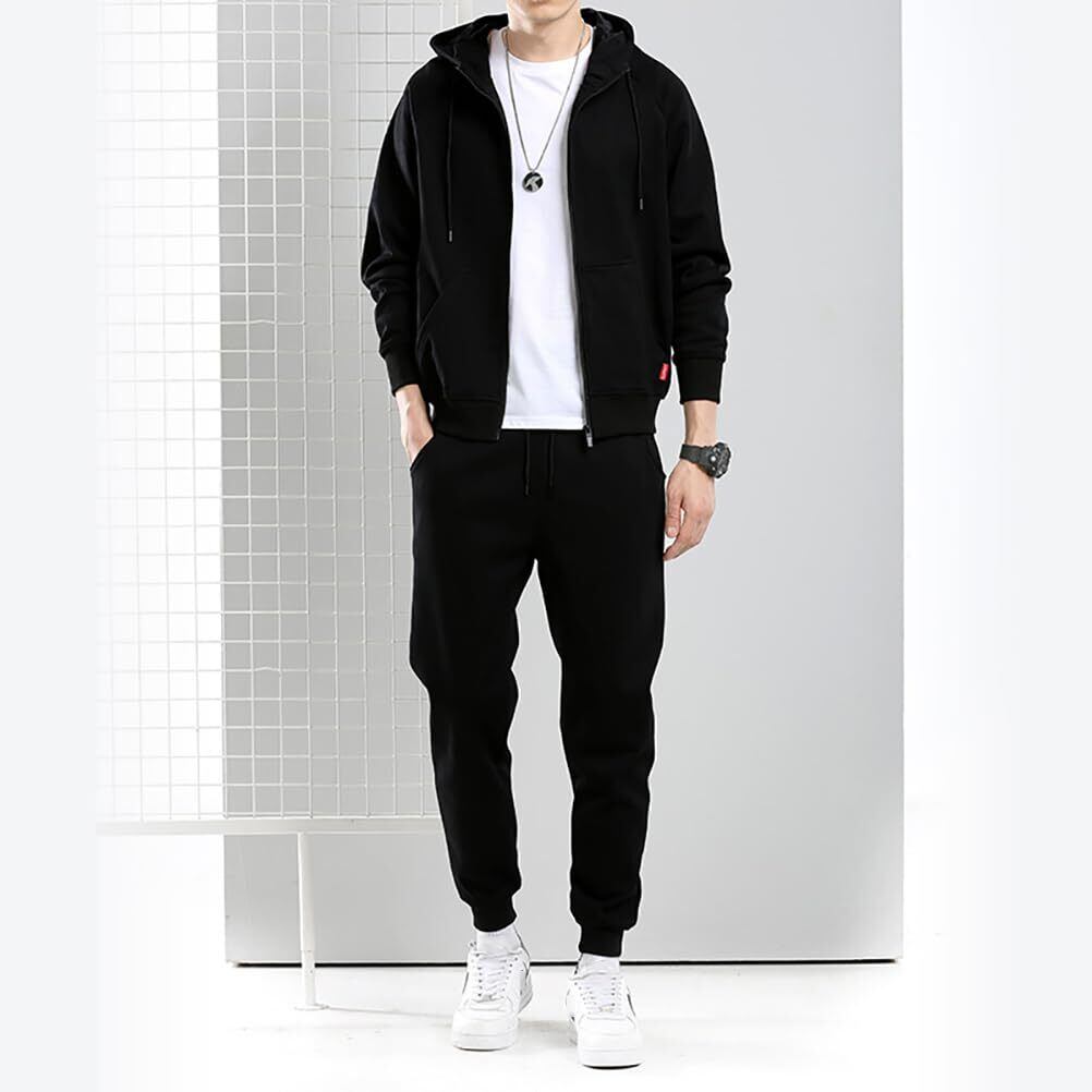 [Majisohiroka] ジャージ メンズ 上下セット 無地 スウェット 長袖 パーカー パンツ セットアップ ジップアップ フード付き スポーツウェア 吸汗 速乾