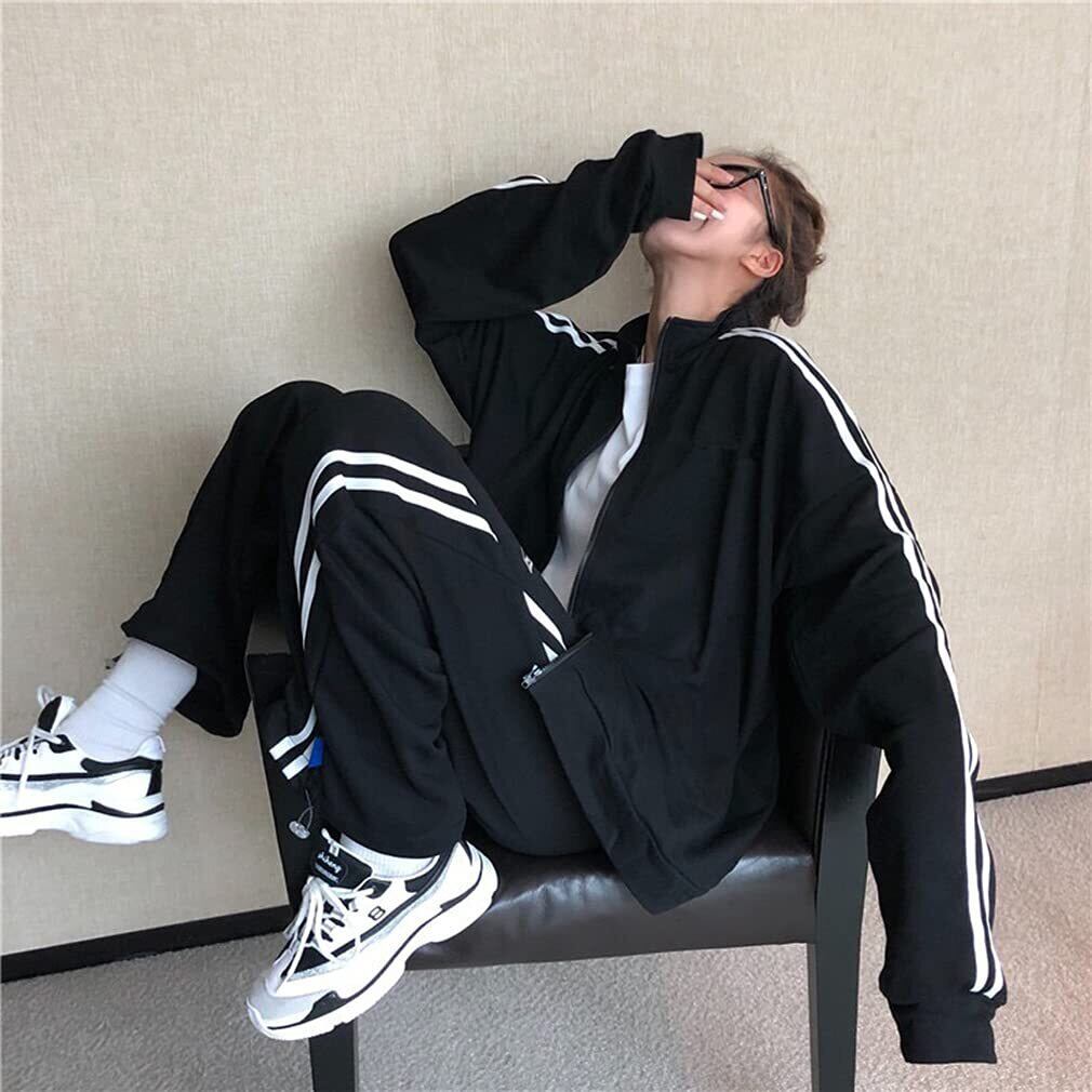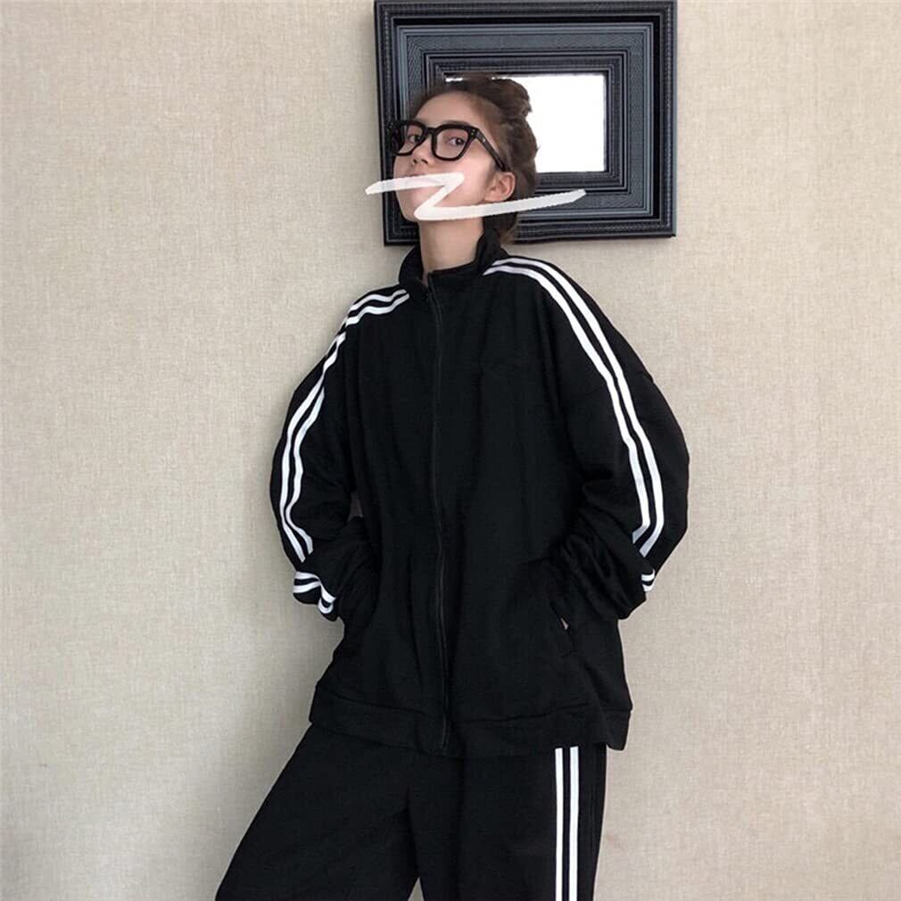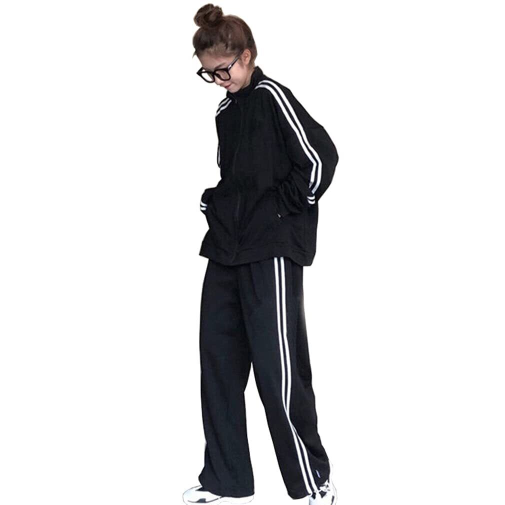 【在庫セール】[D.IIZOO] 春秋 2点セットアップ ジャージ レディース 韓国風 上下セット スウェット パーカー スエット アクティブウェア カジュアル スポーツ 部屋着 ゆったり 大きいサイズ NTZ011 | 無意味ステッカー