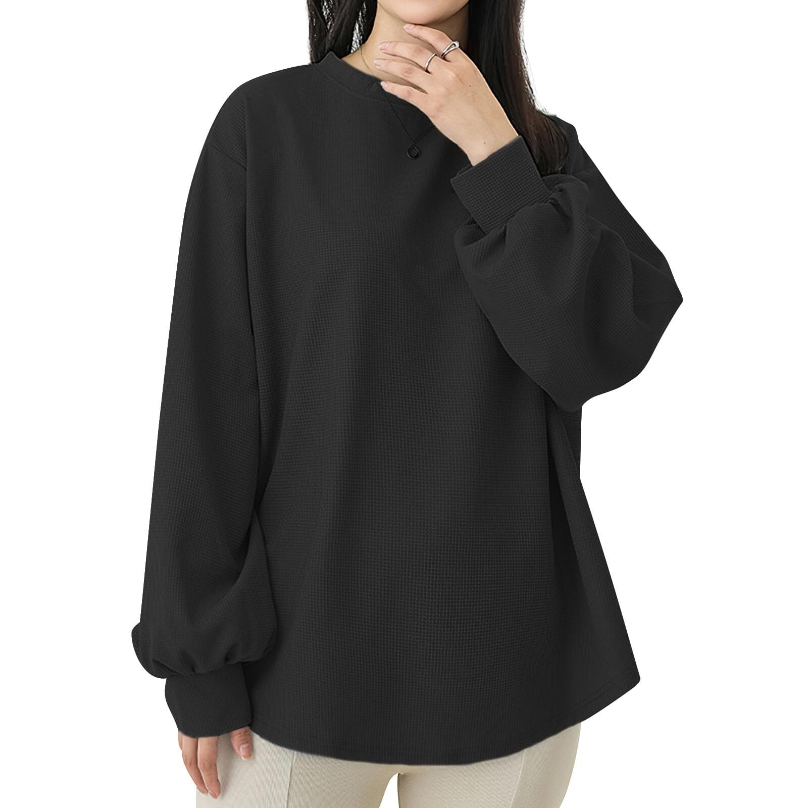 【数量限定】[EAXGO] トレーナー レディース ゆったり 【着痩せ!ゆるっと着れる・こなれ感UP】 長袖トレーナー カットソー 長袖 大きいサイズ 着回し力 快適 おしゃれ 無地 秋 | 無意味ステッカー