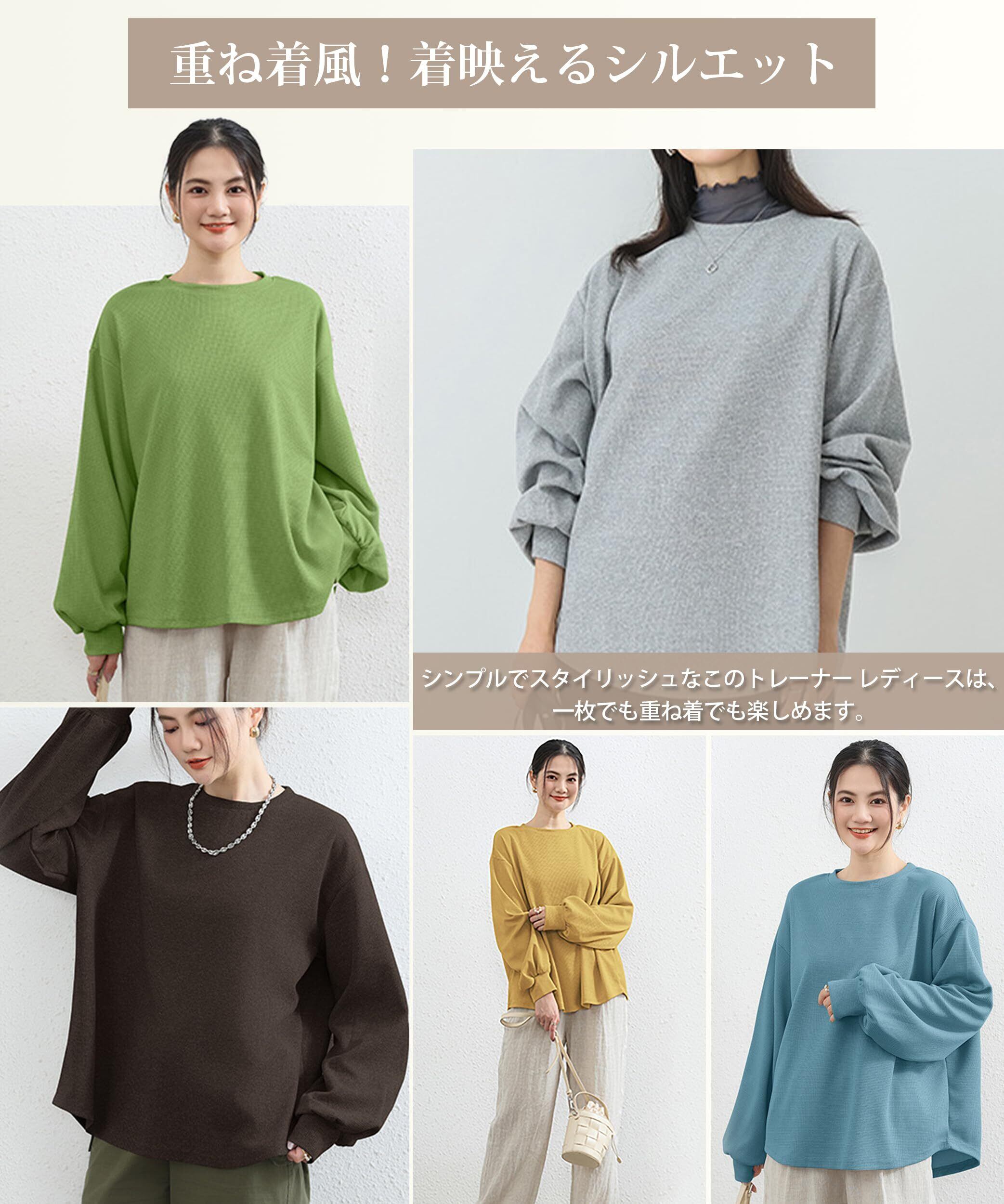 【重ね着風!着映えるこなれ感UP】 シンプルでスタイリッシュな このトレーナー レディースは、一枚でも重ね着でも楽しめます。また、クラシックな丸首のデザインとシンプルなラインが、いつまでも時代遅れではないファッションを描き出しています。 ジーンズでカジュアルに、トレンチコートで都会的に、ビスチェドレスでエレガントに、このジャンパーはすべてを完璧にこなしています。