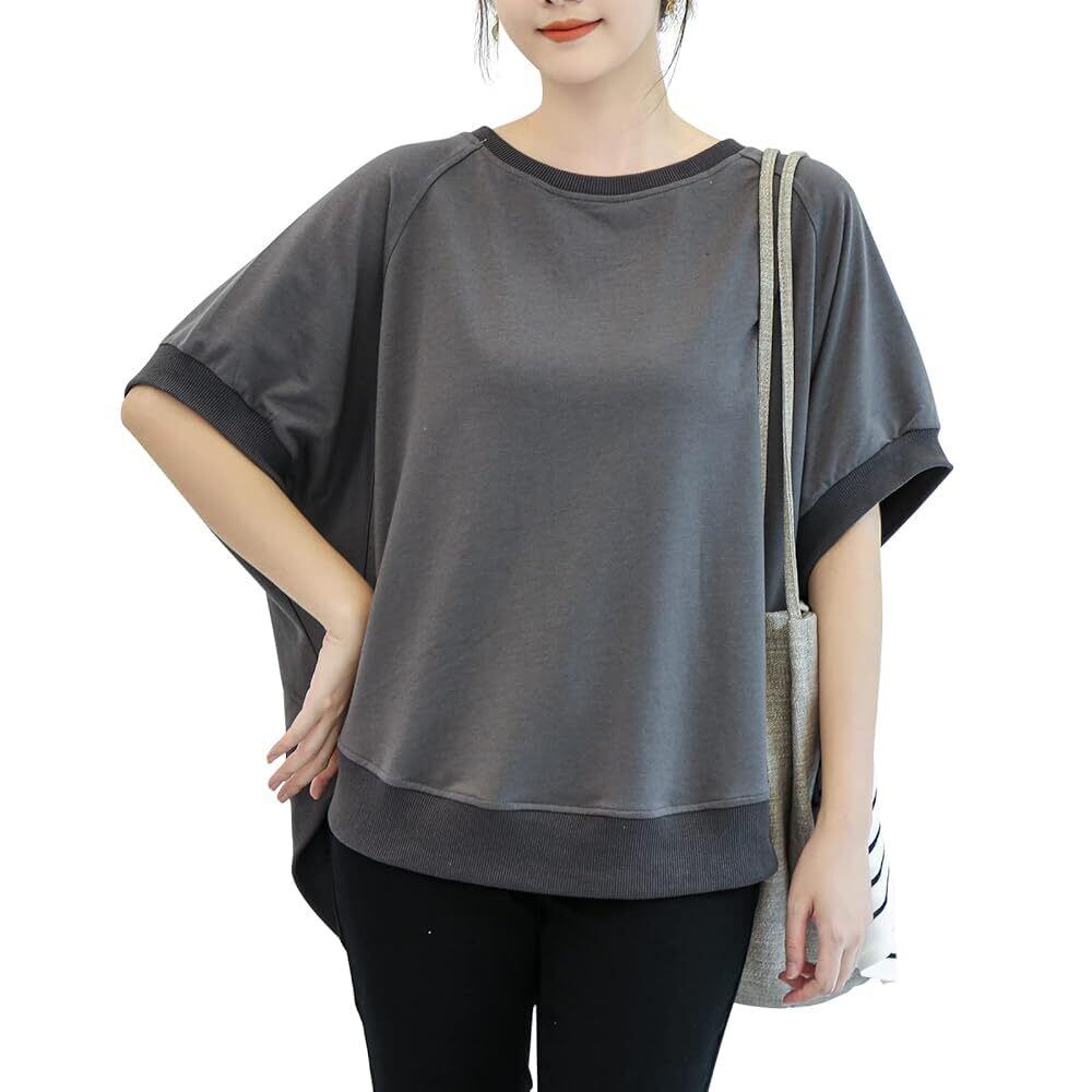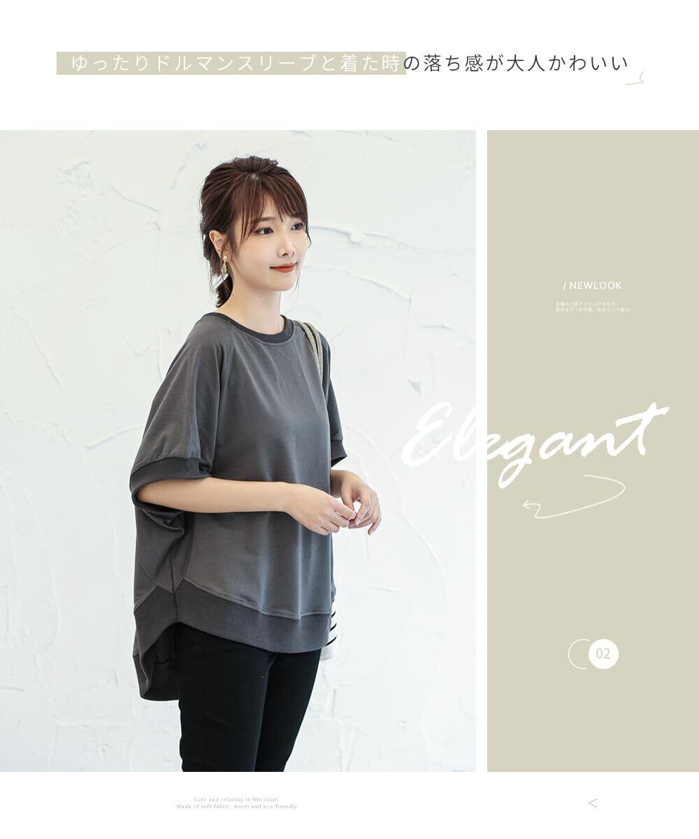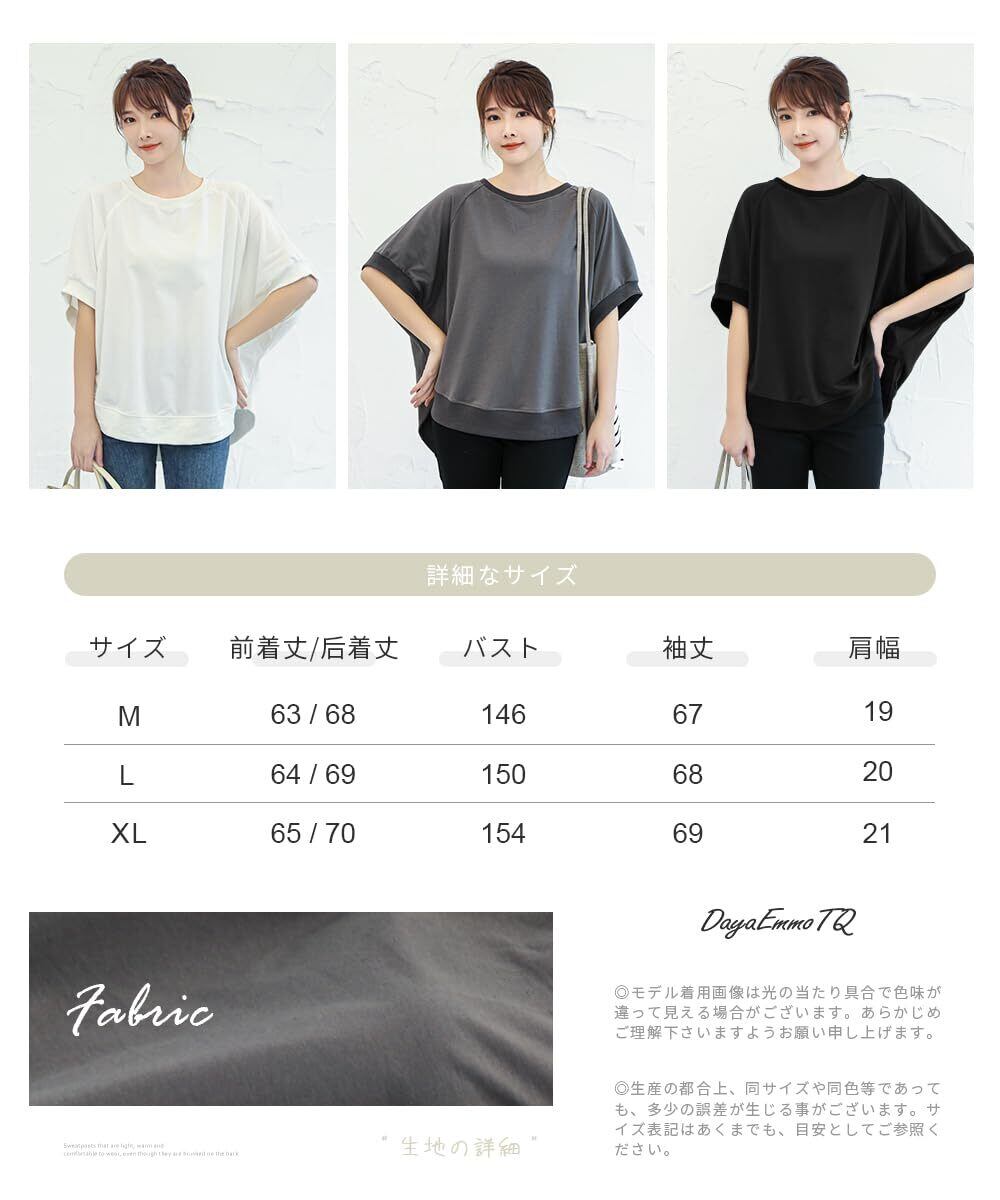 [DayaEmmoTQ] Tシャツ ドルマン袖 レディース トレーナー スウェット カットソー 半袖 無地 ゆったり 夏服 トップス カジュアル シンプル 着痩せ 大きいサイズ きれいめ 体型カバー 五分袖 通勤 普段着 春夏秋