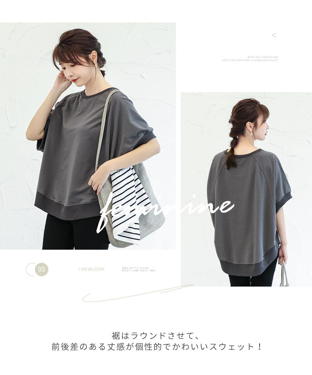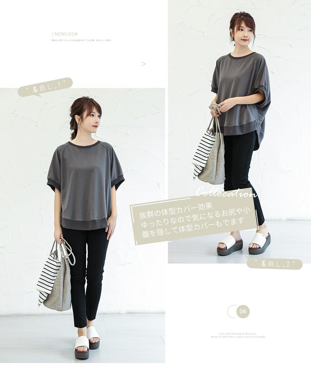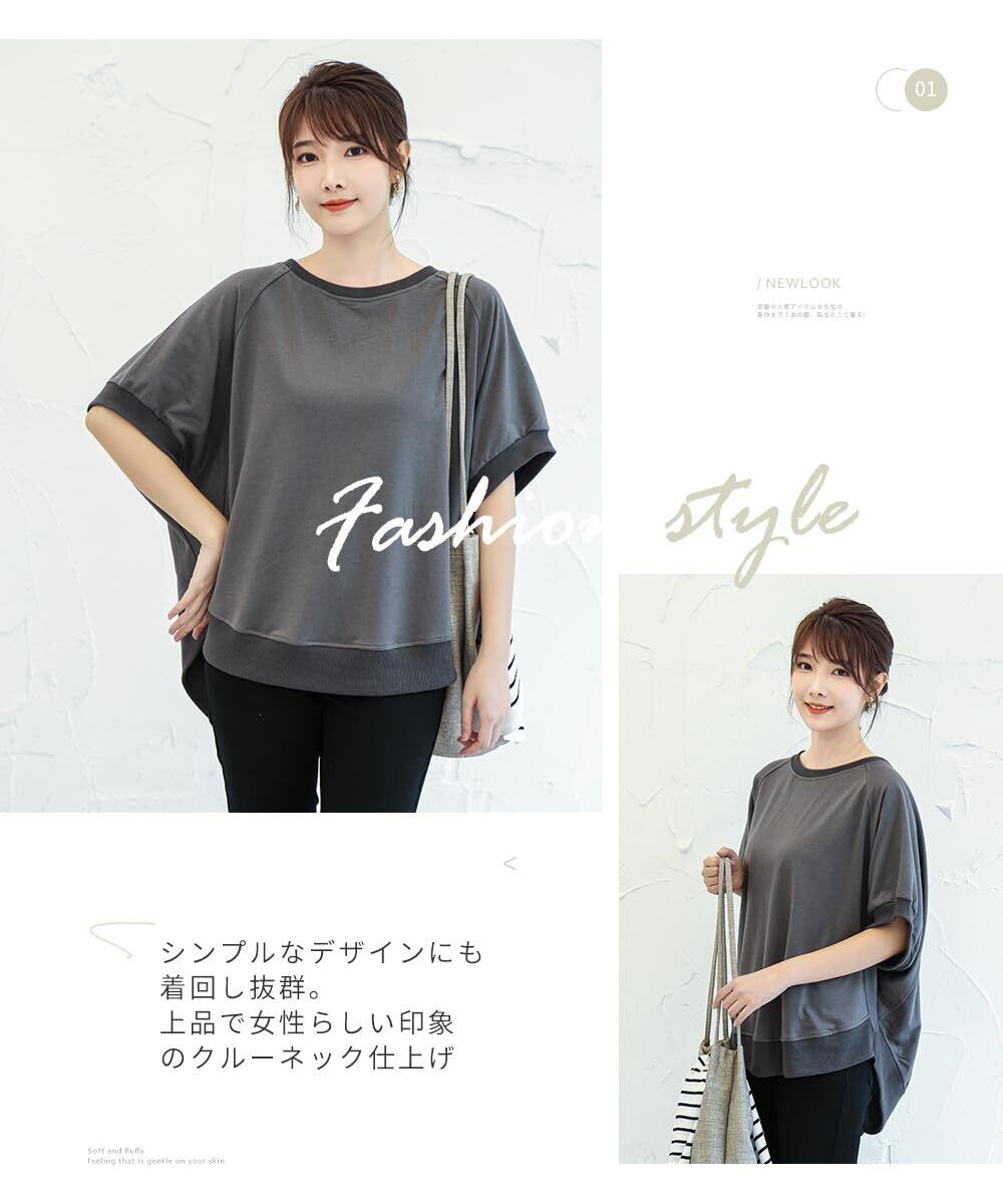 [DayaEmmoTQ] Tシャツ ドルマン袖 レディース トレーナー スウェット カットソー 半袖 無地 ゆったり 夏服 トップス カジュアル シンプル 着痩せ 大きいサイズ きれいめ 体型カバー 五分袖 通勤 普段着 春夏秋