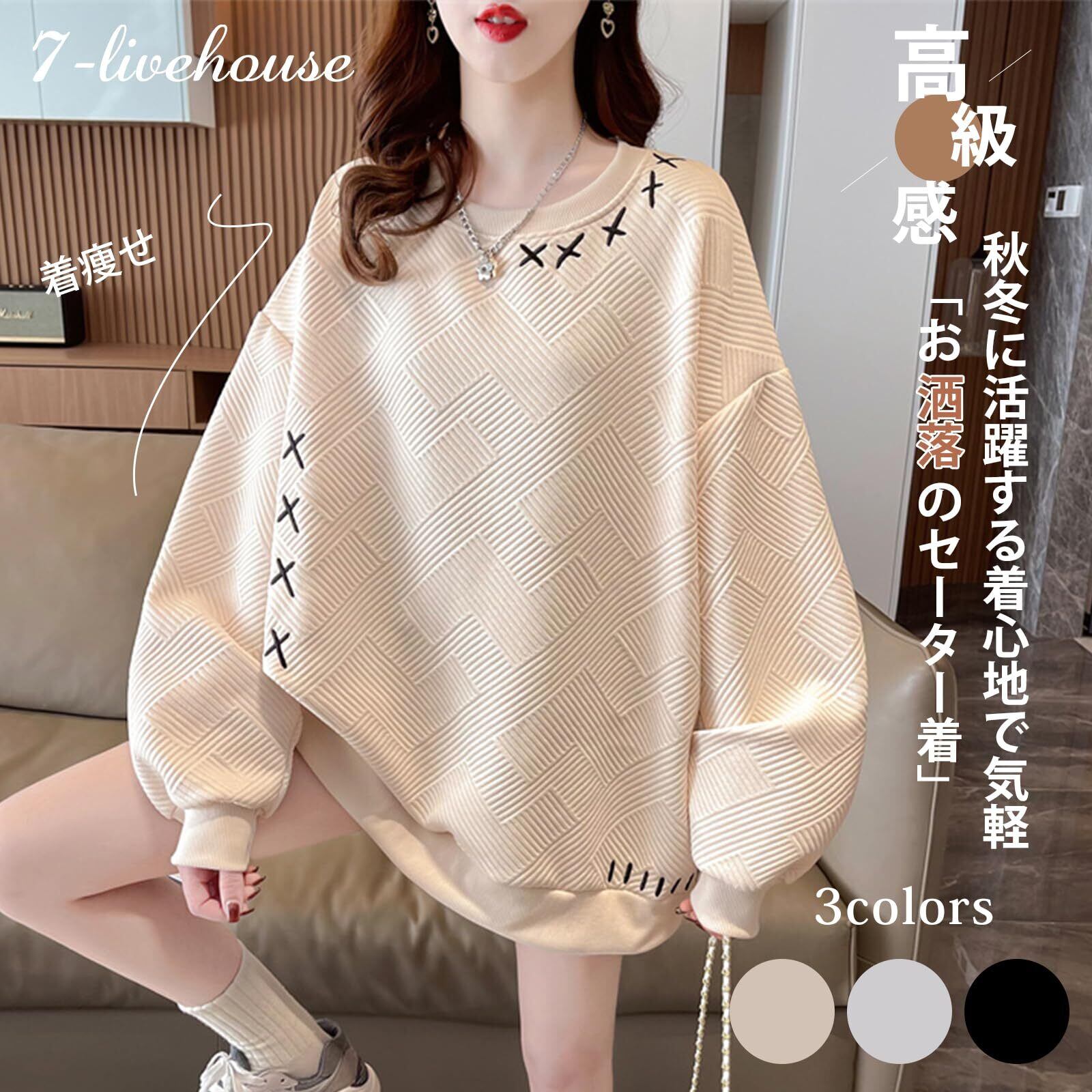 トレーナー レディース パーカー スウェット 長袖 丸首 プルオーバー トップス 刺繍 ゆったり 大きいサイズ シンプル カジュアル 無地 韓国 体型カバー 着痩せ 春 秋 冬