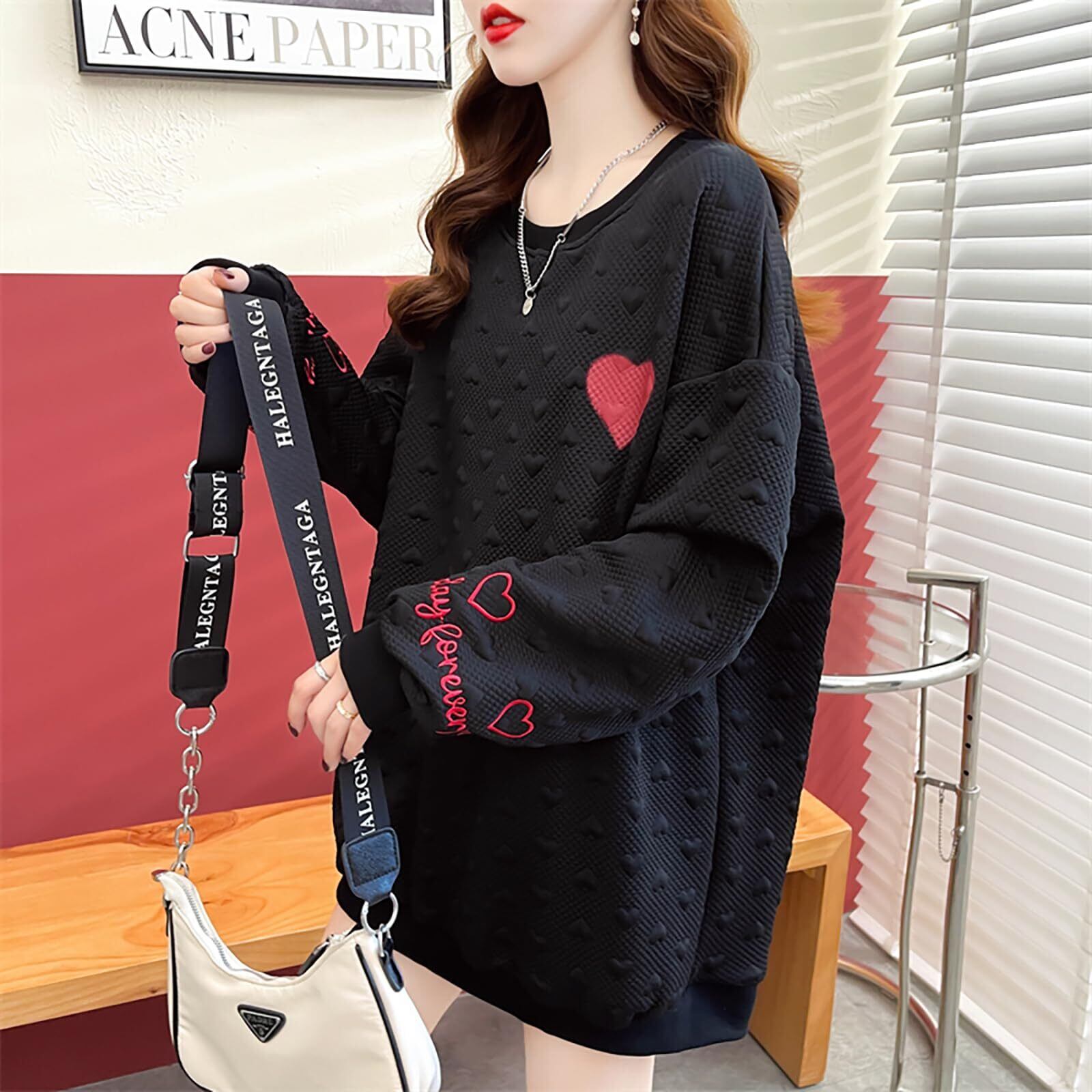 【数量限定】[Luo PuLe] トレーナー レディース ゆったり パーカー クルーネック スウェット プルオーバー ジップアップトレーナー 韓国 アウター オーバーサイズ ジャケット 秋春服 ビックシルエット トップス | 無意味ステッカー