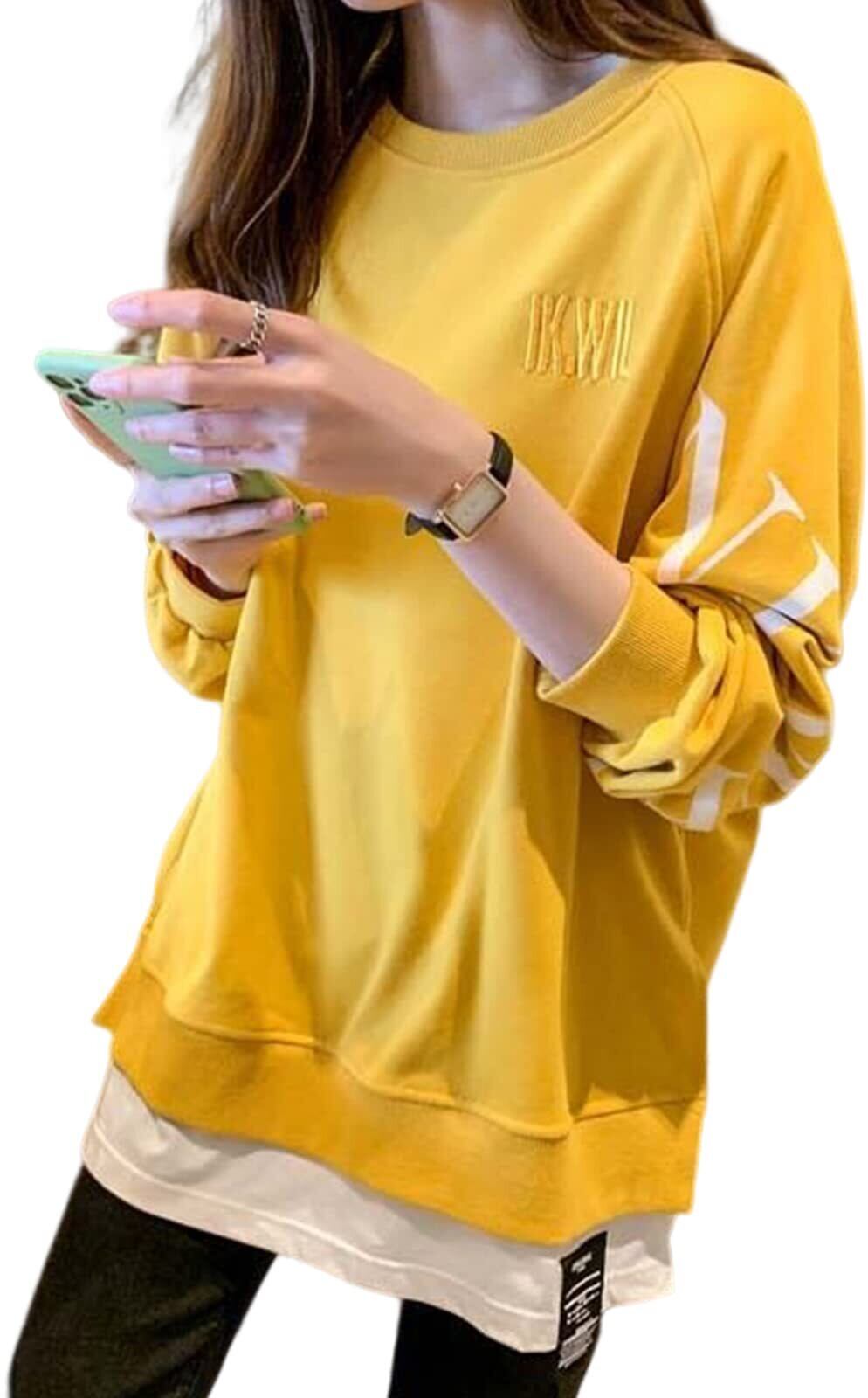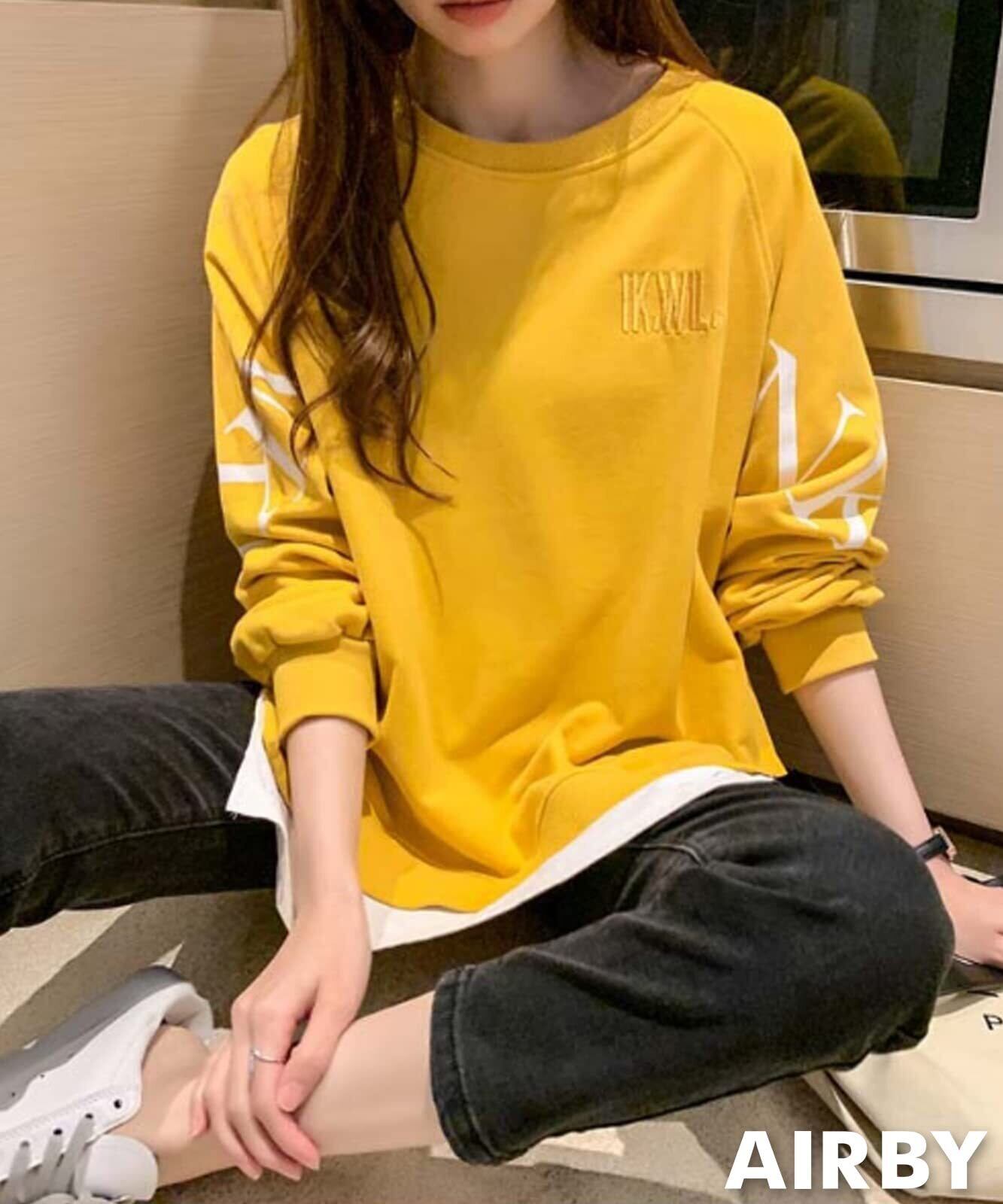 [エアバイ] レイヤード 重ね着風 ゆる ロンT スウェット ゆったり 袖ロゴ オーバーサイズ トップス レディース