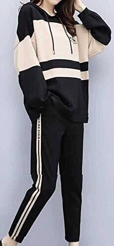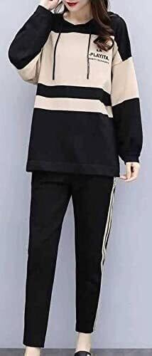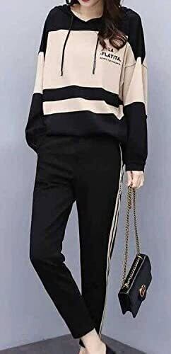 体型カバーにもなるユッタリしたプルオーバー上下セットアップ浅めのフードのついたパーカーチュニックとサイドがシルエットを強調するパンツは普段使いにおススメ