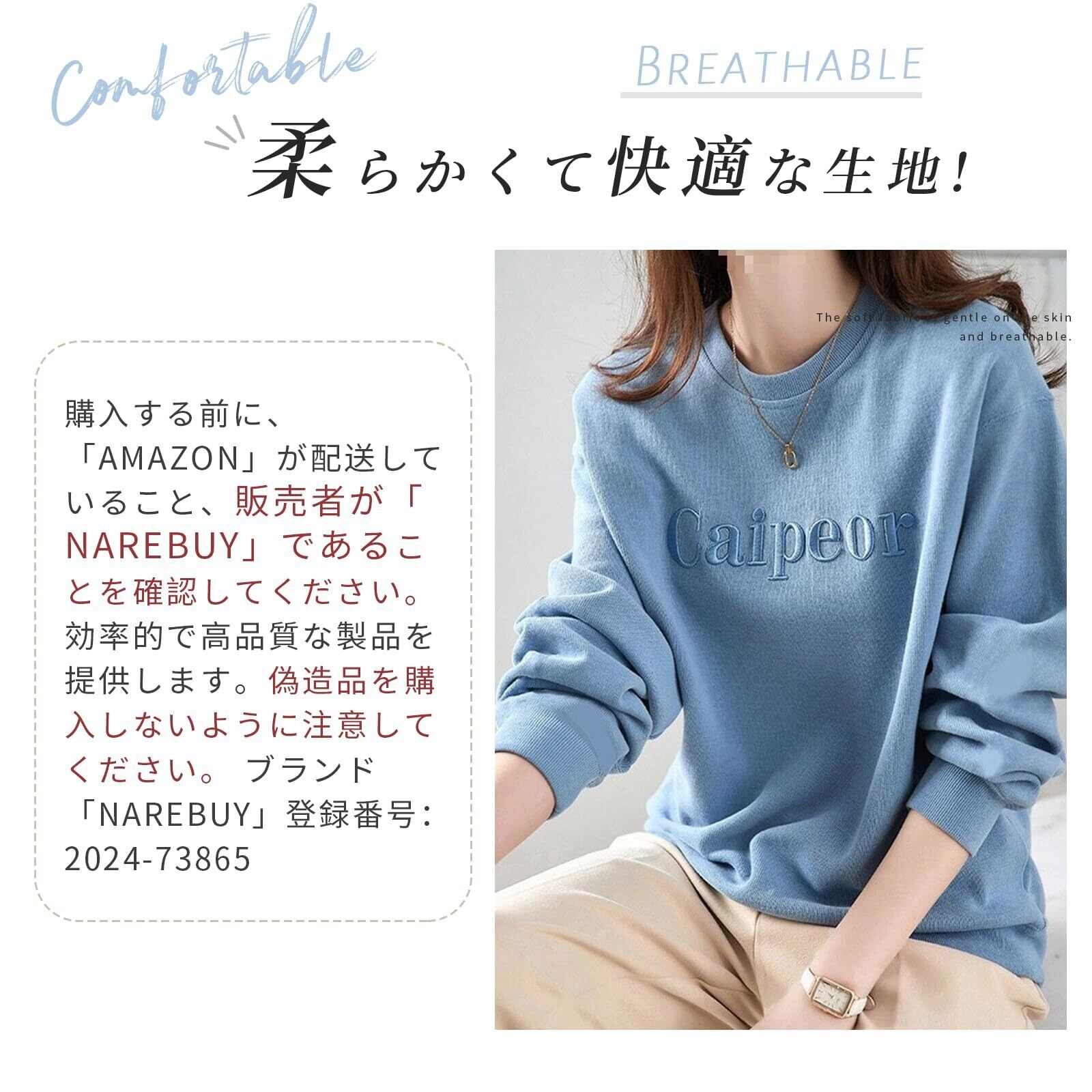 【在庫処分】[Narebuy] トレーナー レディース ラウンドネック オーバーサイズ 長袖トップス logo 無地 着回し力 ゆったり キャンパススタイル 人気 ファッション かわいい レイジースタイル お出掛け カジュアル 春 秋 冬 | 無意味ステッカー