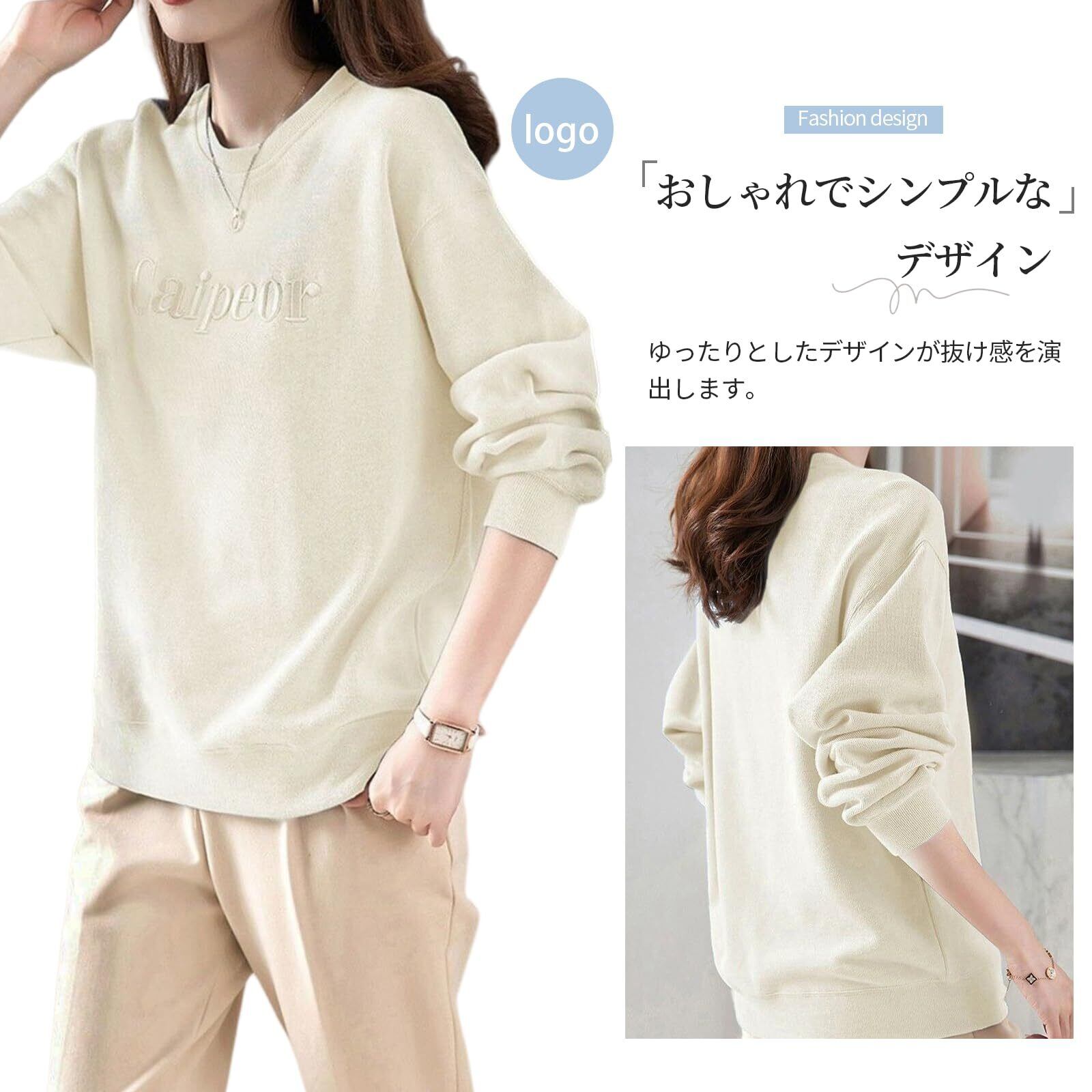 [Narebuy] トレーナー レディース ラウンドネック オーバーサイズ 長袖トップス logo 無地 着回し力 ゆったり キャンパススタイル 人気 ファッション かわいい レイジースタイル お出掛け カジュアル 春 秋 冬