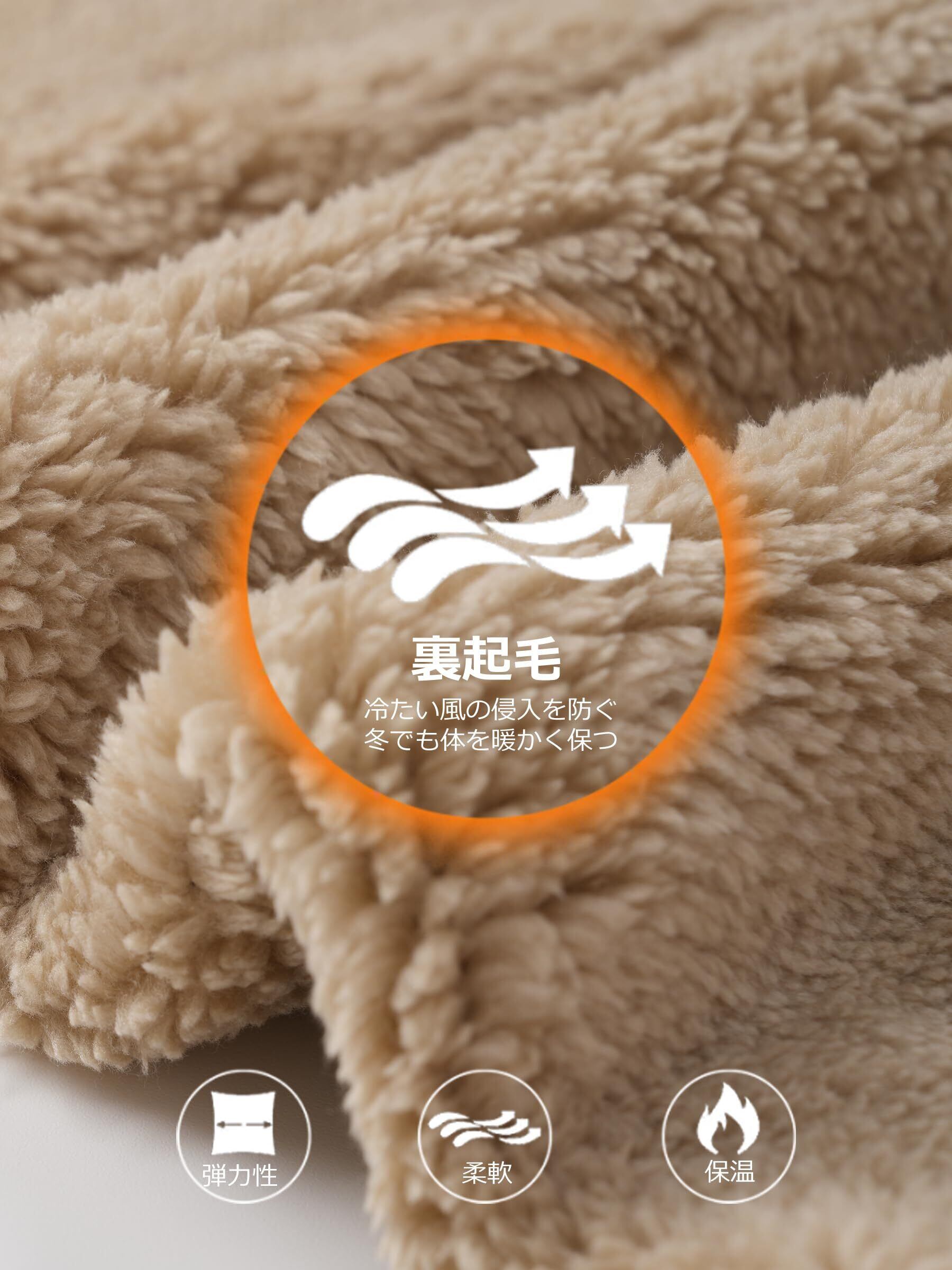 2.裏地付き:シェルパの裏地は肌に優しい素材で、寒い冬に冷たい風からあなたを守ります。
