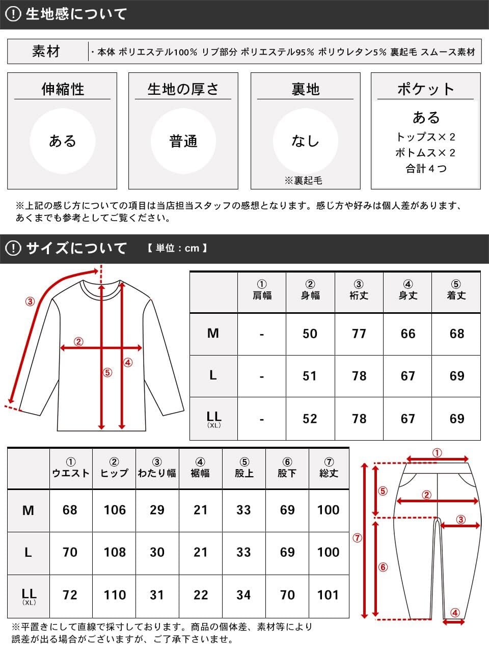 素材=本体 ポリエステル100% リブ部分 ポリエステル95% ポリウレタン5% 裏起毛 スムース素材 生産国=中国