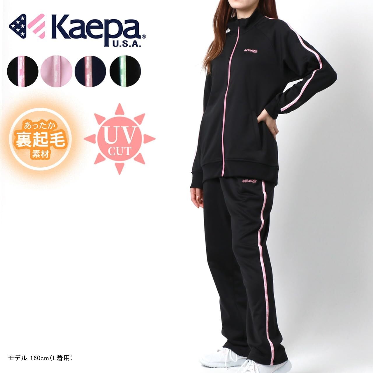 [Kaepa] [ケイパ]上下セット レディース 秋 裏起毛 サイド ロゴテープ UVカット 長袖 ジャージ セットアップ 上下 トラックジャケット あったか スポーツ トレーニング フィットネスウェア ランニングウェア