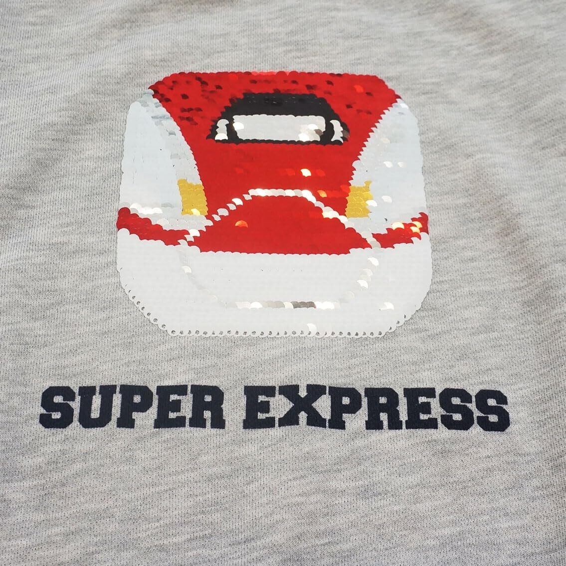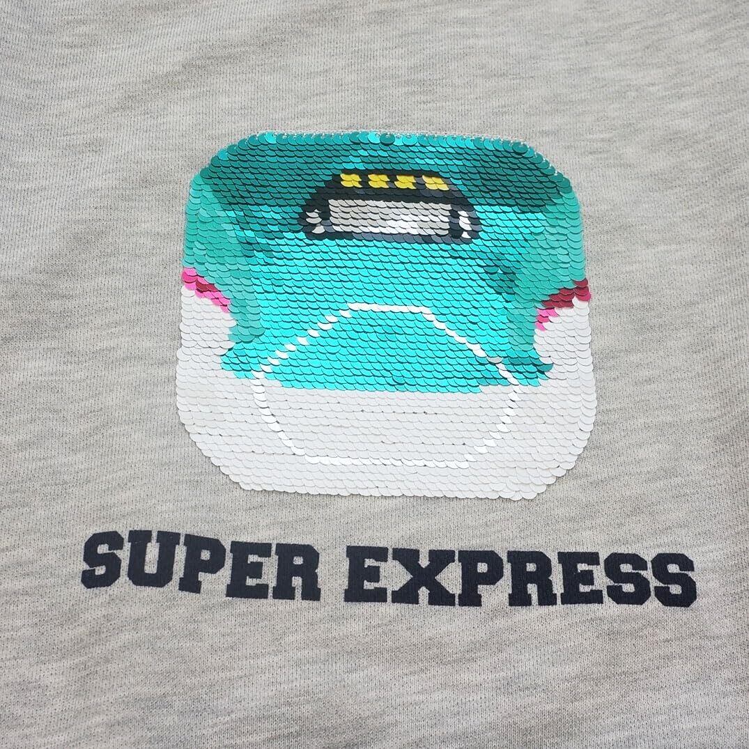 人気の新幹線リバーシブルスパンコールトレーナー。ひっくり返すと車両が変わります。