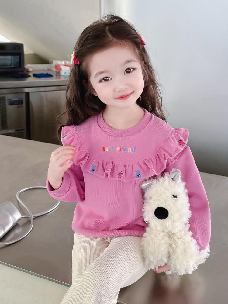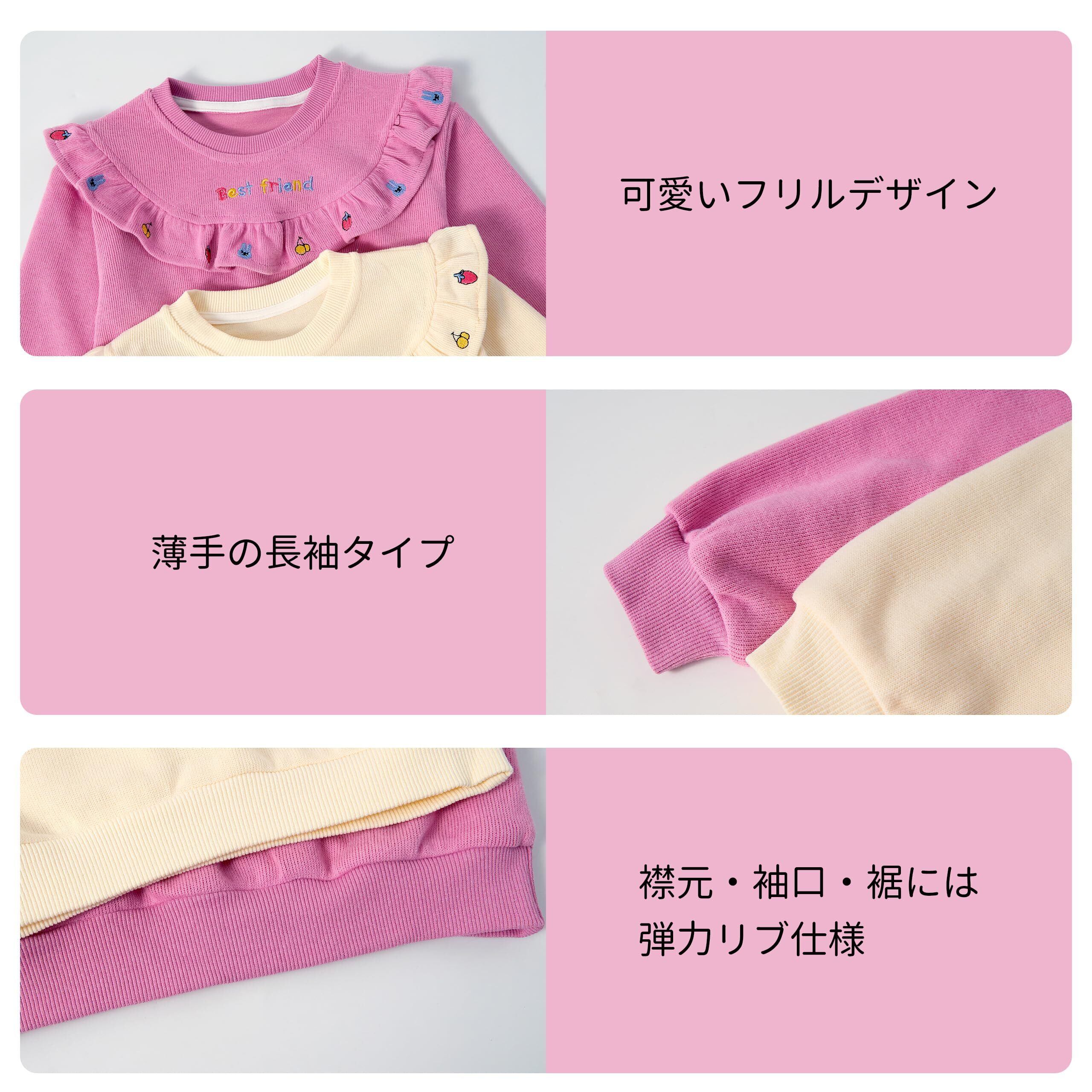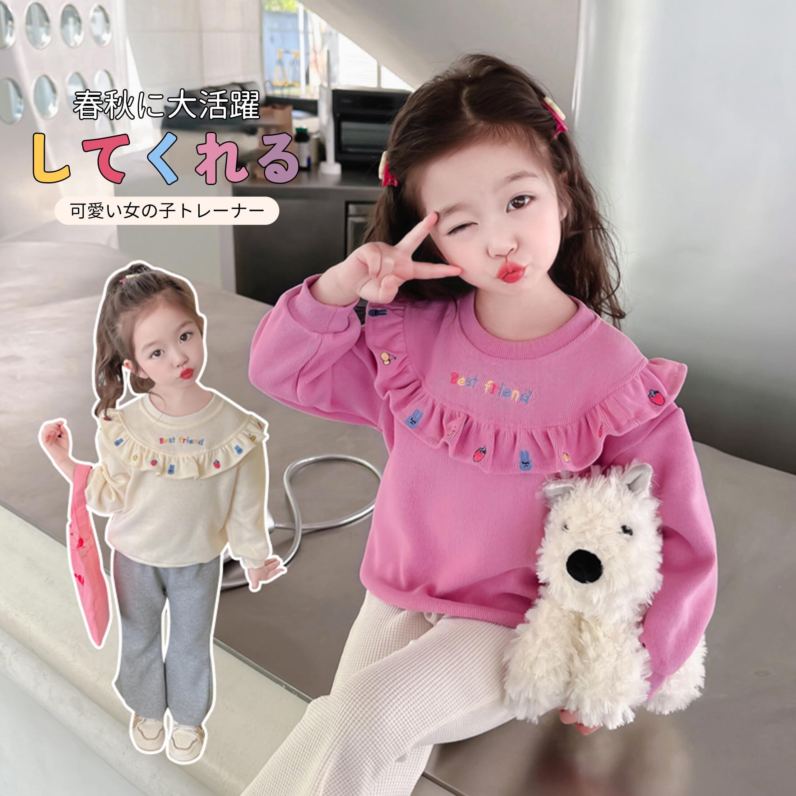 [Miipat] 子供服 女の子 秋服 トレーナー キッズ トップス 女児 長袖 スウェット 刺繡 フリル 可愛い 薄手 韓国 春 秋 90-130cm