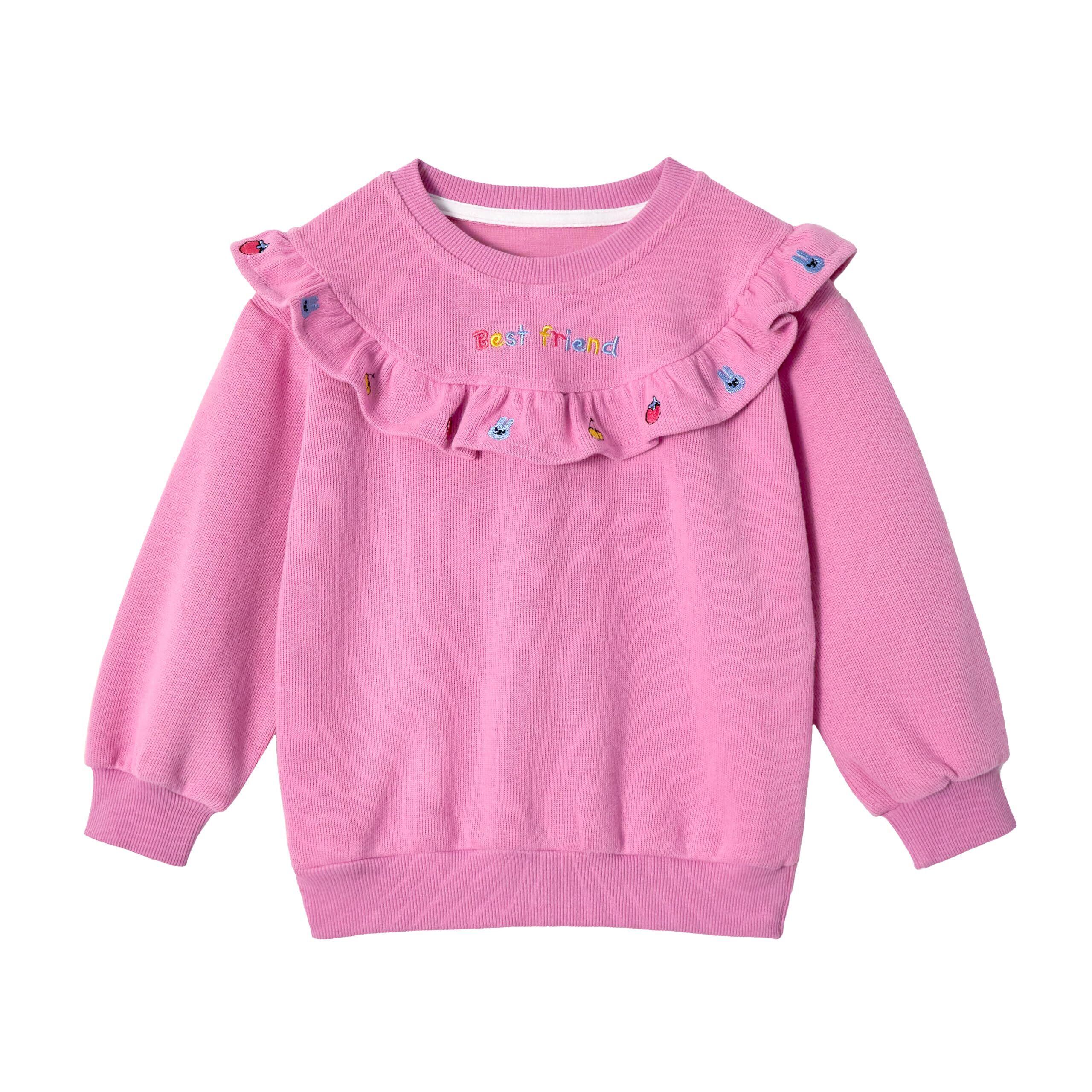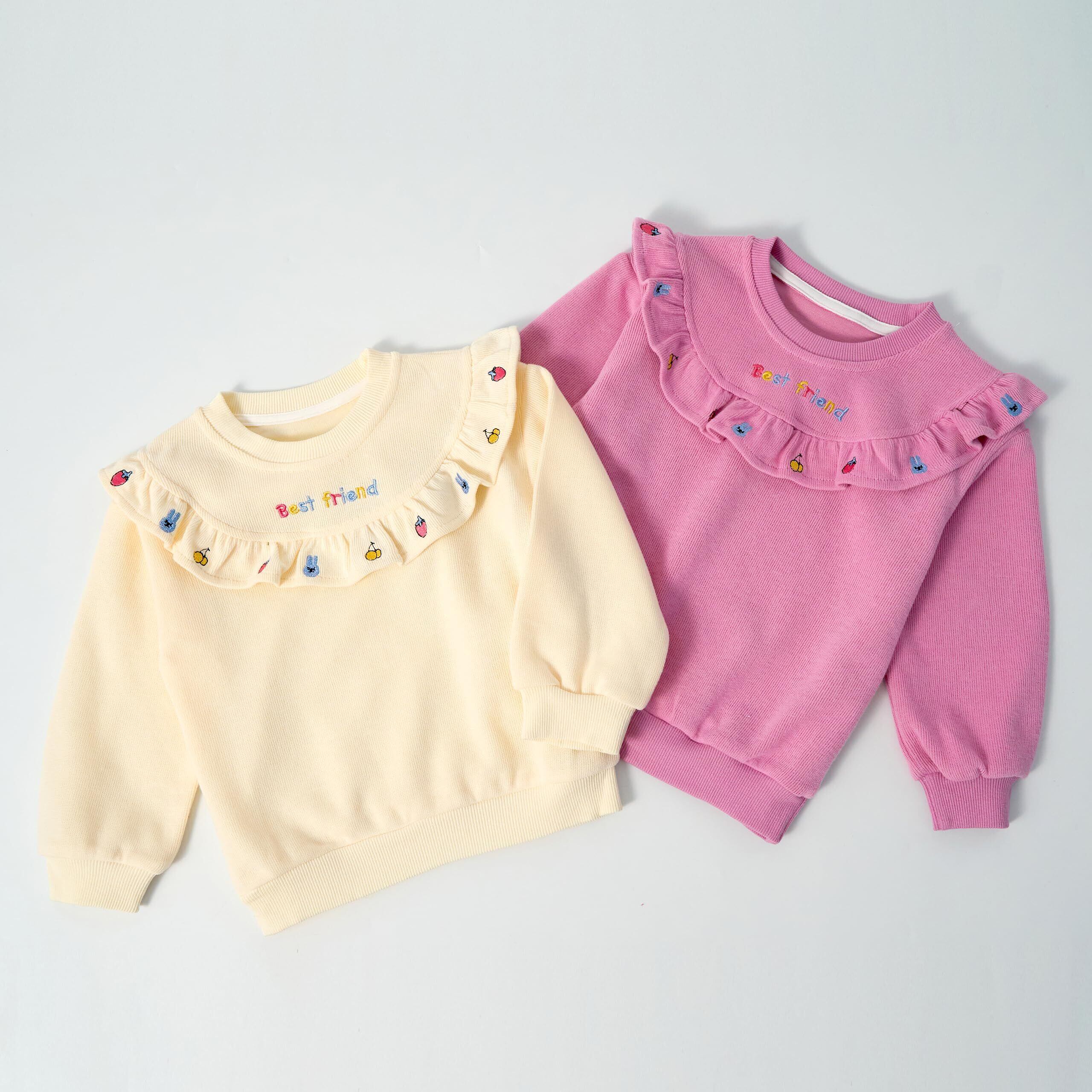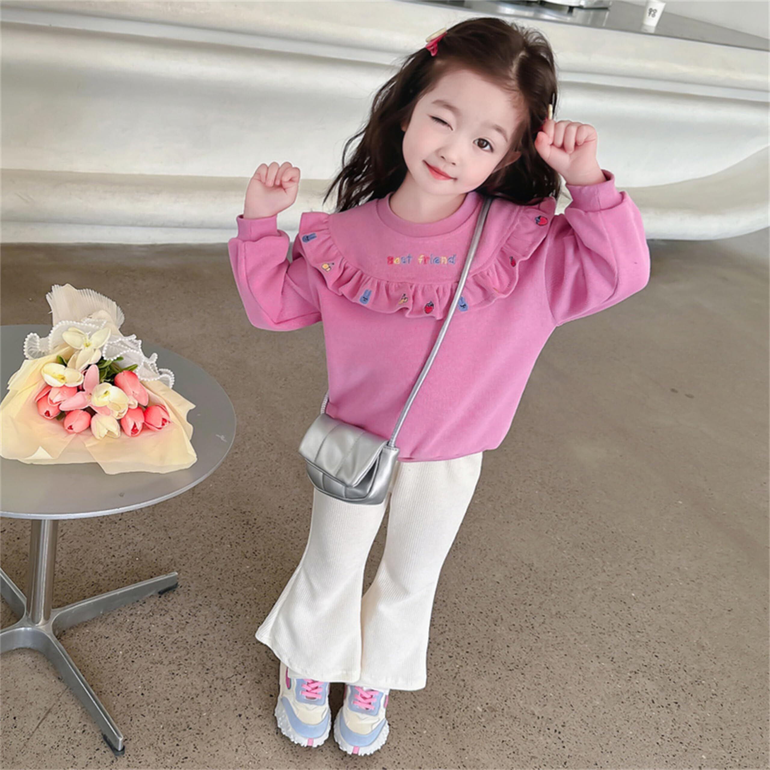 [Miipat] 子供服 女の子 秋服 トレーナー キッズ トップス 女児 長袖 スウェット 刺繡 フリル 可愛い 薄手 韓国 春 秋 90-130cm