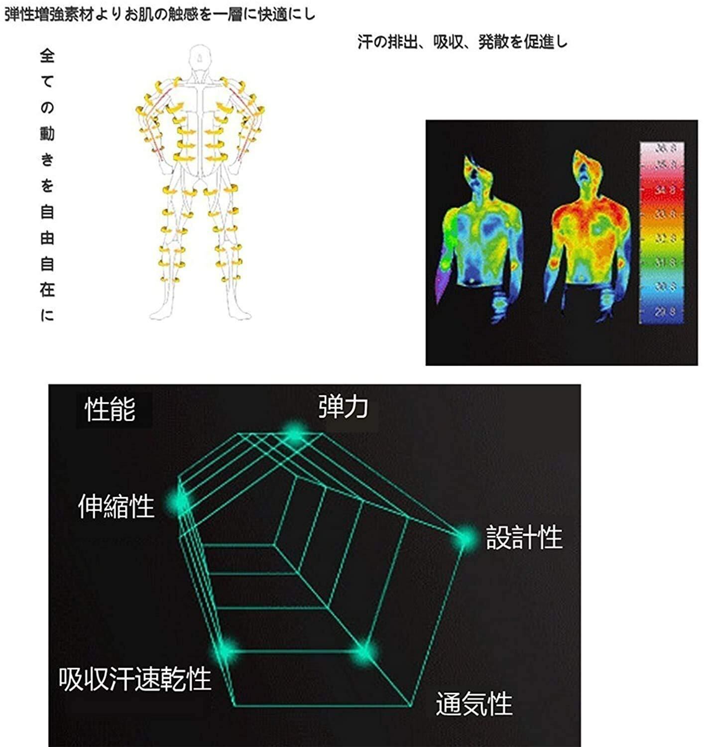 【素材構成】ポリエステル繊维94.5% + スパンデックス5.5%。【セット内容】半袖シャツ、長袖シャツとハーフパンツとロングタイツとパーカー5点セット。全年このセットだけ充分!