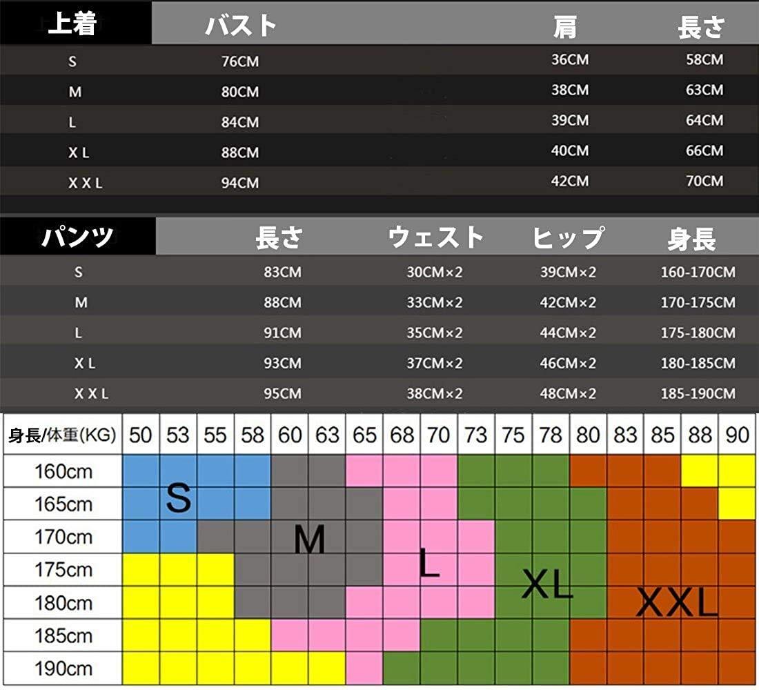 【Sサイズ】推奨体重55kg〜60kg【Mサイズ】推奨体重60kg〜70kg;【Lサイズ】推奨体重70kg〜80kg;【XLサイズ】推奨体重80kg〜90kg;【XXLサイズ】推奨体重90kg〜100kg。※個人身長の差別によって、サイズ対照表は参考用だけです。ゆったり型が好きなら、ワンサイズ大きめを勧めております。