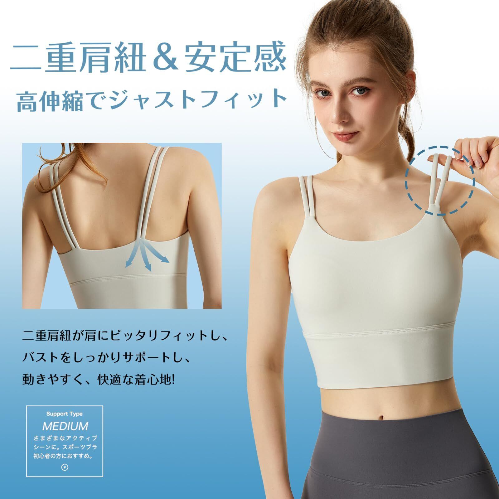 [Solcy] ブラジャー スポーツブラ ノンワイヤーブラ ホックなし フルカップ 二重肩紐 ブラ レディース スポブラ 揺れない トレーニング ヨガ 吸汗速乾