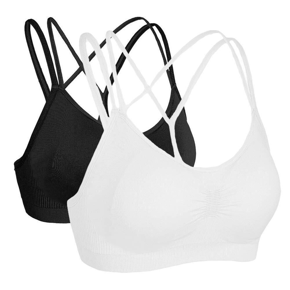 [T WILKER] 2枚組スポーツブラ 揺れない ヨガウェア レディース トップス 通気性 ナイトブラ スポーツブラジャー ヨガブラ 細い紐がXデザイン 可愛い ブラトップ 伸縮性 スポーツウェア ノンワイヤーブラ ブラジャー