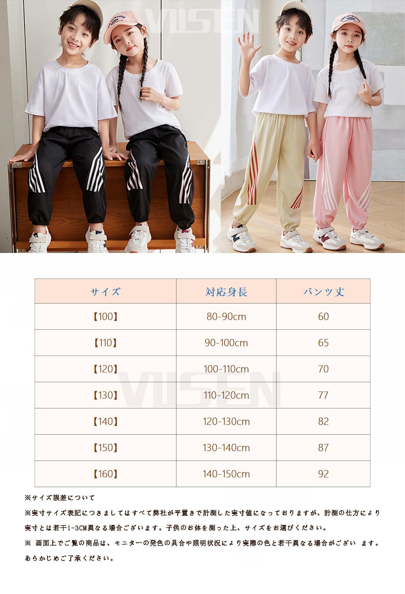 [VIISEN] 子供服 男の子 ロングパンツ 女の子 長ズボン キッズ ジャージ 男女兼用 縞模様 ウエストゴム 美脚ストレッチ カジュアル スポーツ ボトムス 多色 100-160cm