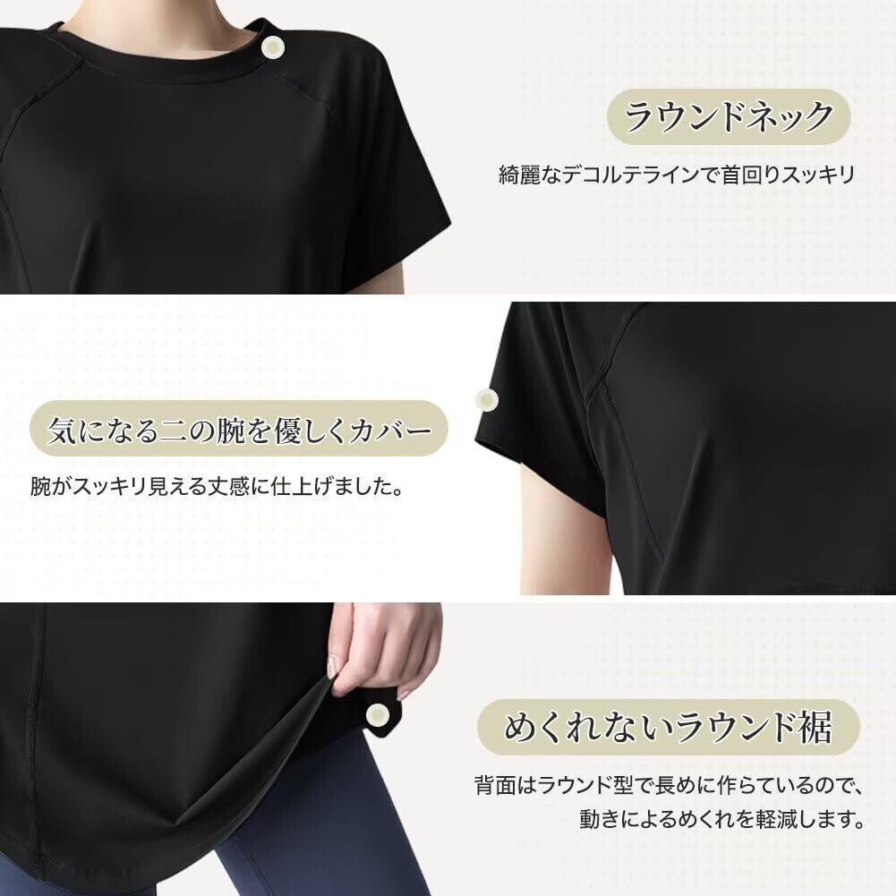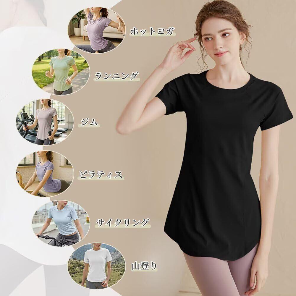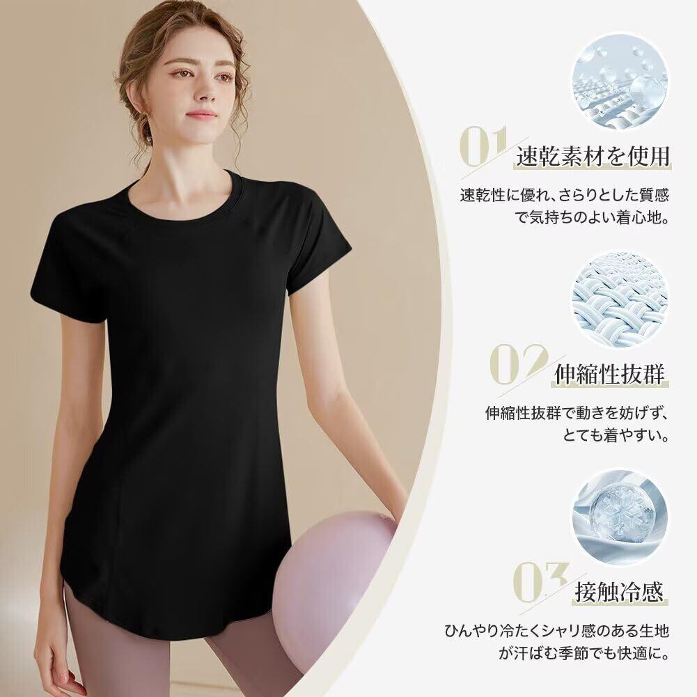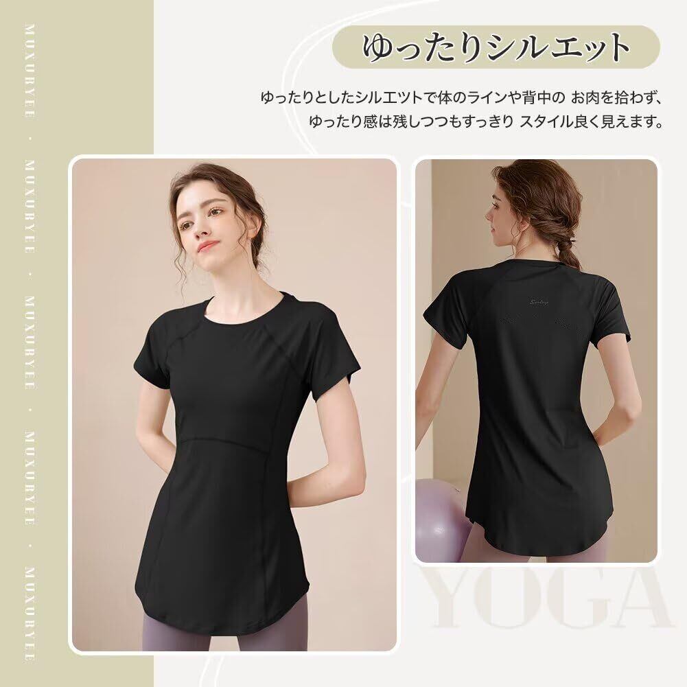 [Muxuryee] ヨガウェア トップス レディース スポーツ Tシャツ 冷感 半袖 ゆったり ピラティス トレーニングウェア 吸汗速乾 UVカット