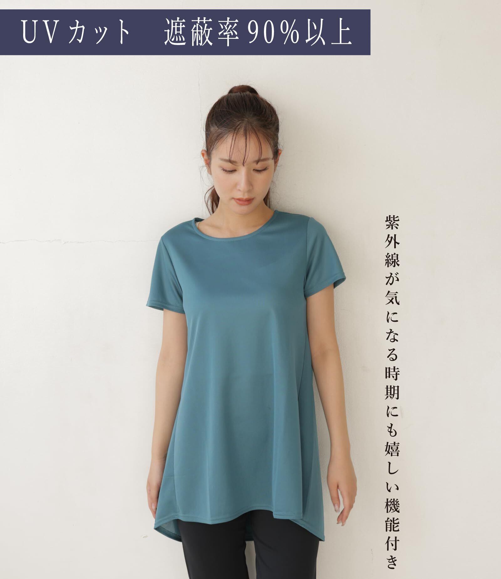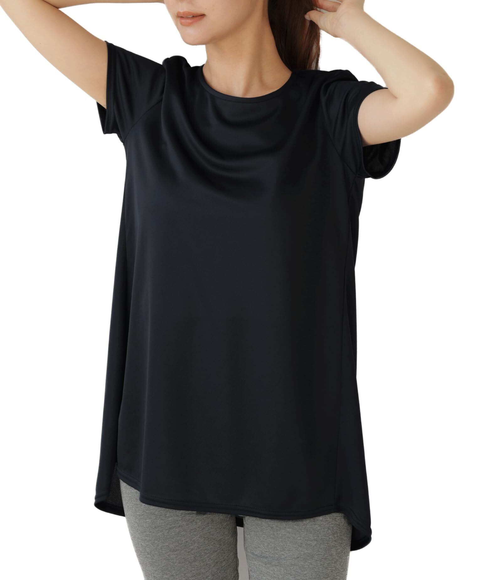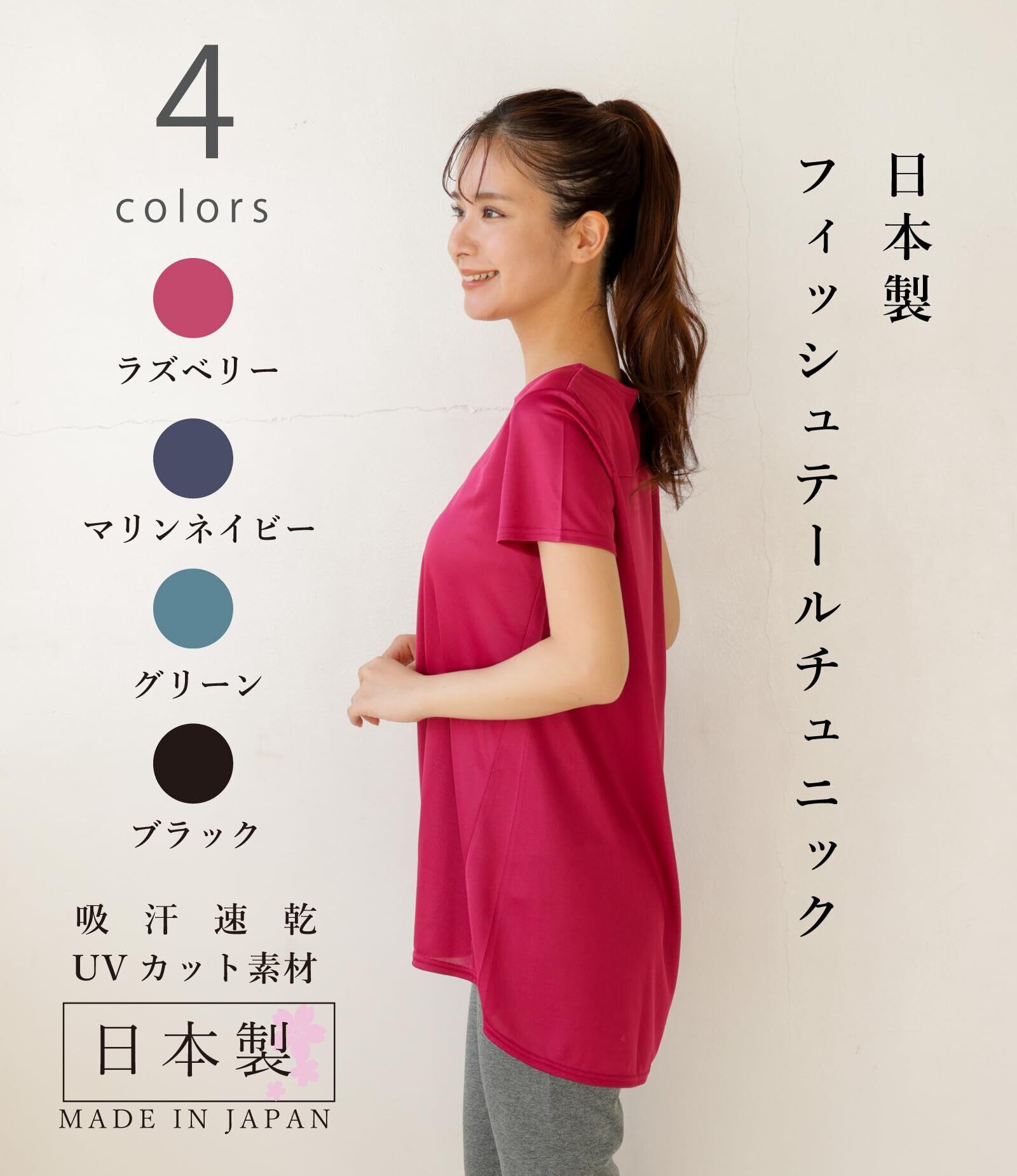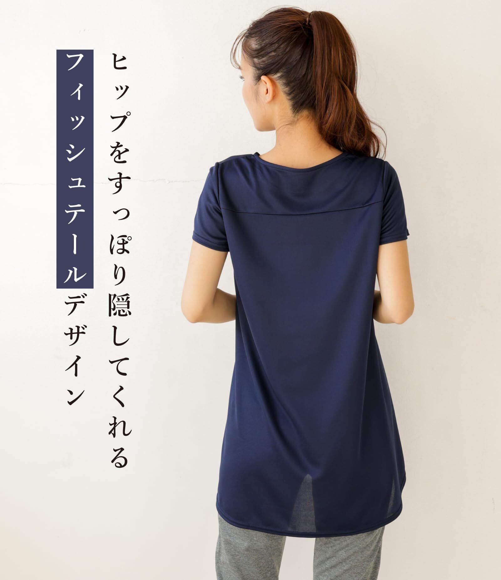 [egneL] エグネル 日本製 トップス トレーニング ウェア ヨガ レディース 吸汗 速乾 UVカット メッシュ生地 フィッシュテール スポーツ 半袖 婦人 春 夏