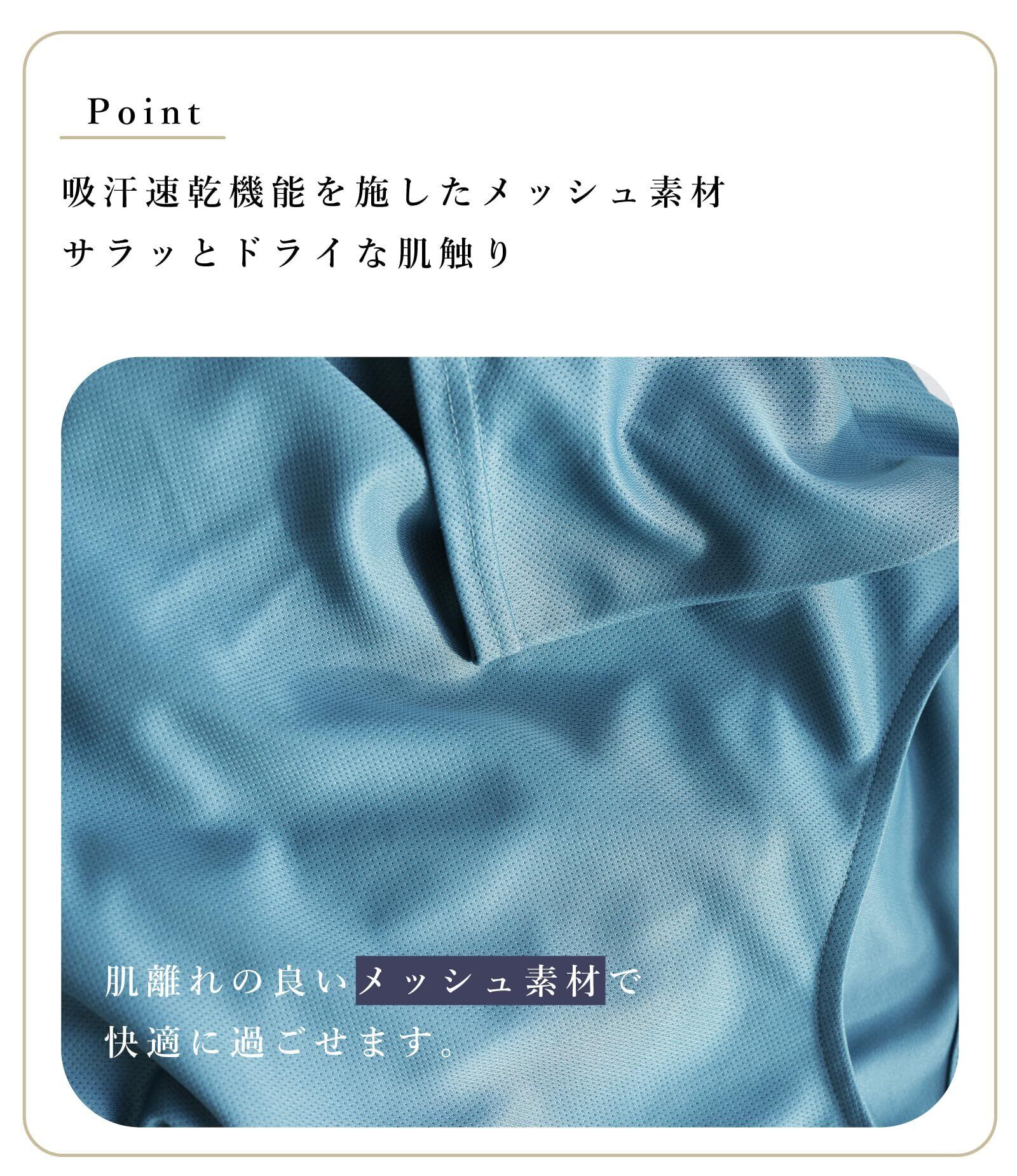 【メッシュ素材と吸汗速乾機能でさらさら肌感】肌離れのよいメッシュ素材で汗をかいてもサラサラ。エクササイズで嬉しい吸汗速乾機能付きでサラッとドライな肌触り。洗濯してもすぐに乾きます。