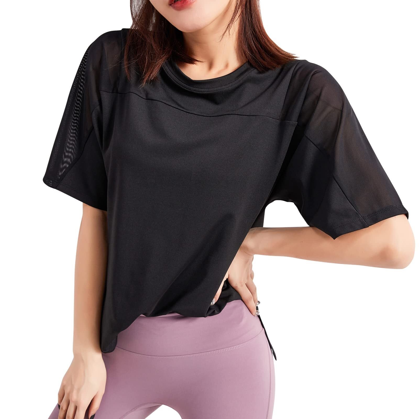 【ファッションデザイン】両肩にメッシュデザインで、オシャレです。素材にも縫製にも徹底にこだわっています。ヨガ・フィットネス・ランニング・テニス・ダンス・アウトドア等、様々な運動に最適です。
