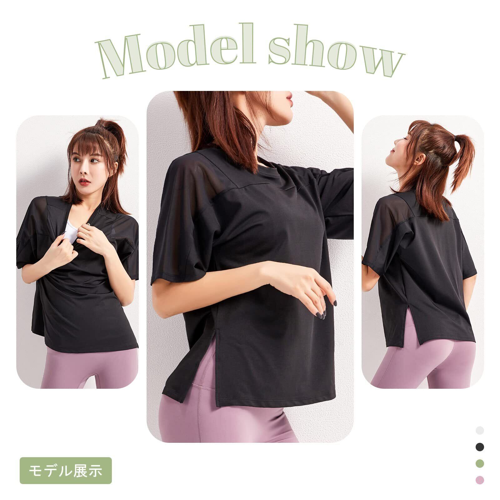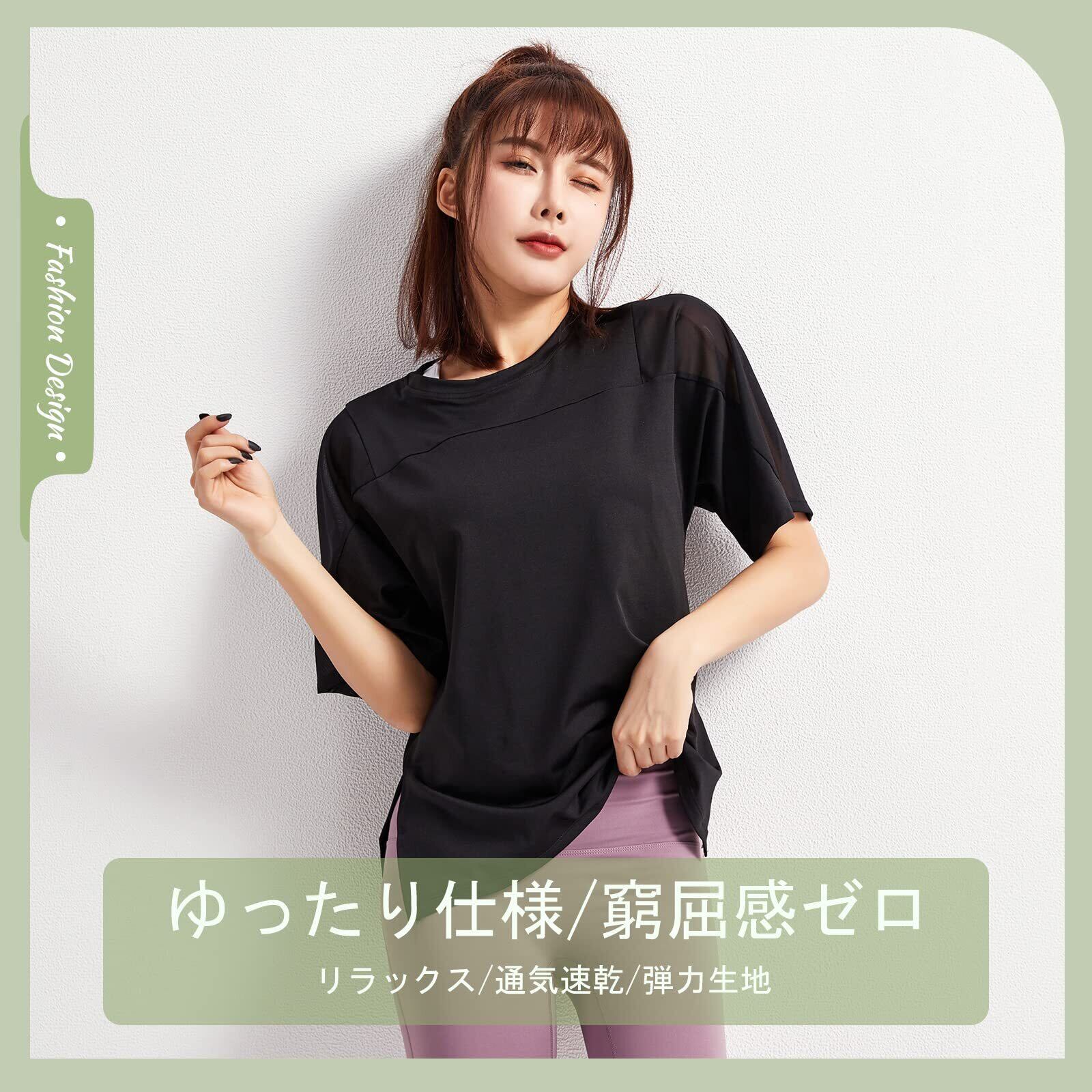 [Sillictor] スポーツシャツ ヨガウェア レディース Tシャツ トレーニングウェア 半袖 トップス ストレッチ 【冷感速乾&通気防臭】