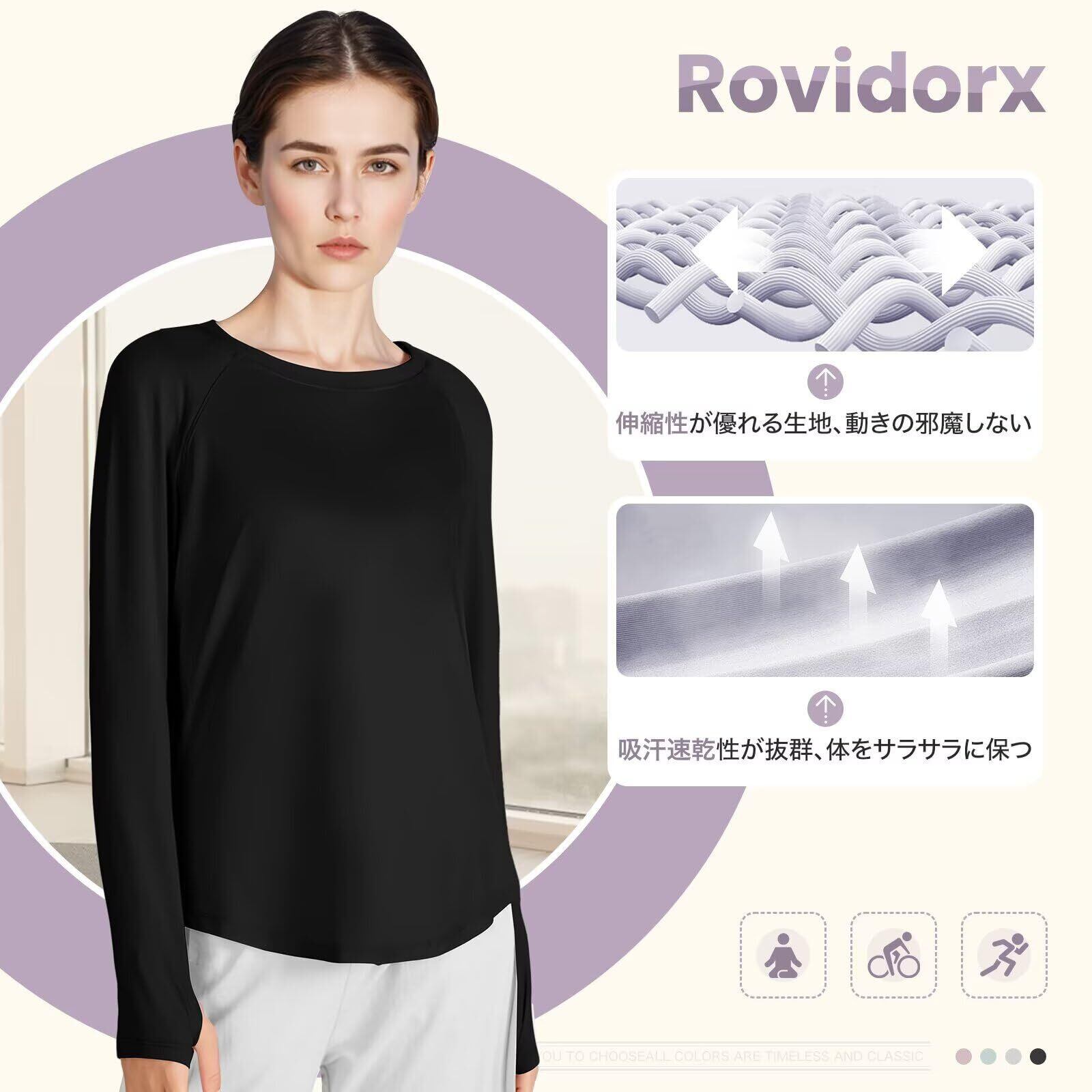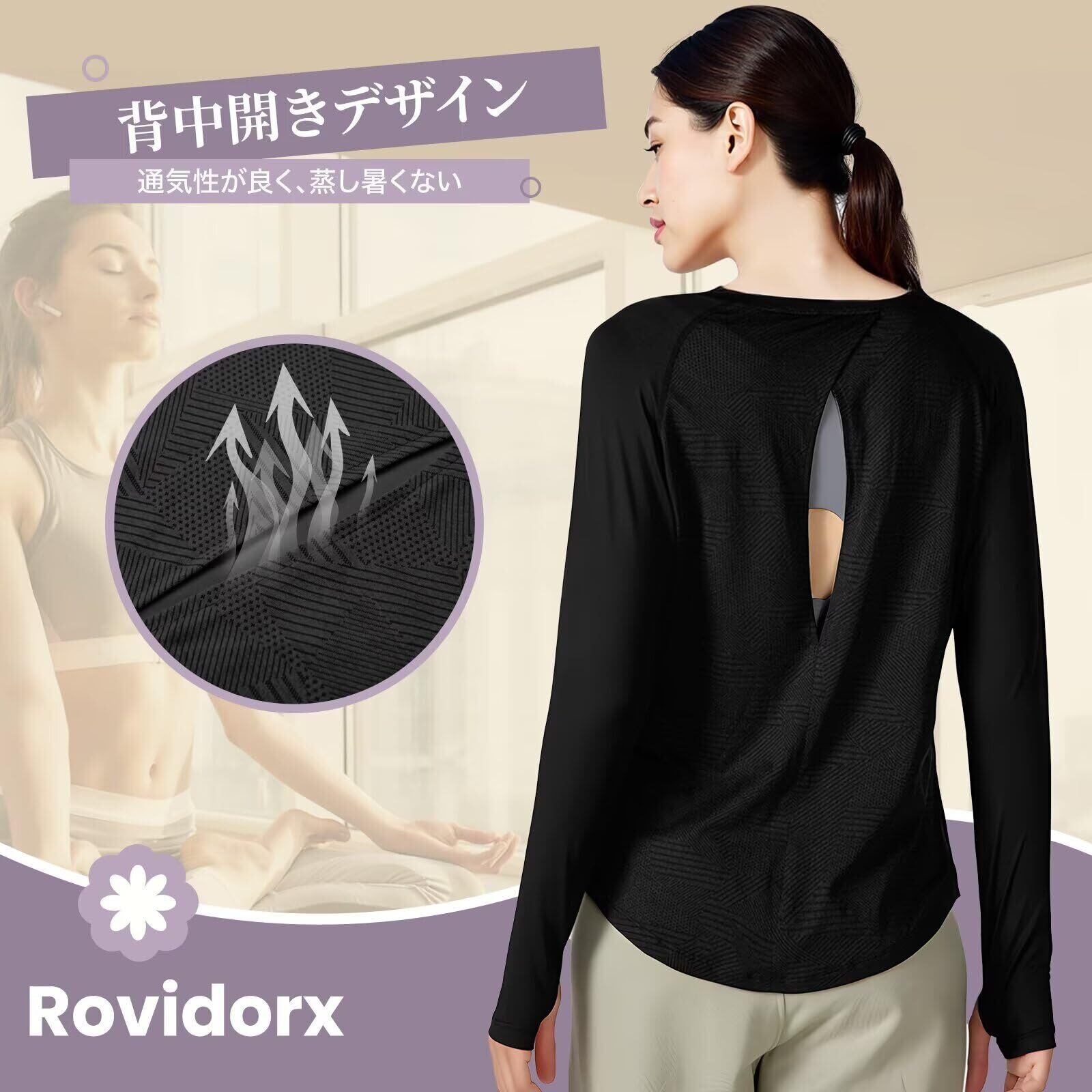 [Rovidorx] ヨガウェア トップス ピラティスウェア 背中開き 長袖 tシャツ レディース スポーツ ゆったり 指穴付き ホットヨガ スポーツ ジム フィットネ トレーニング ランニング 美背
