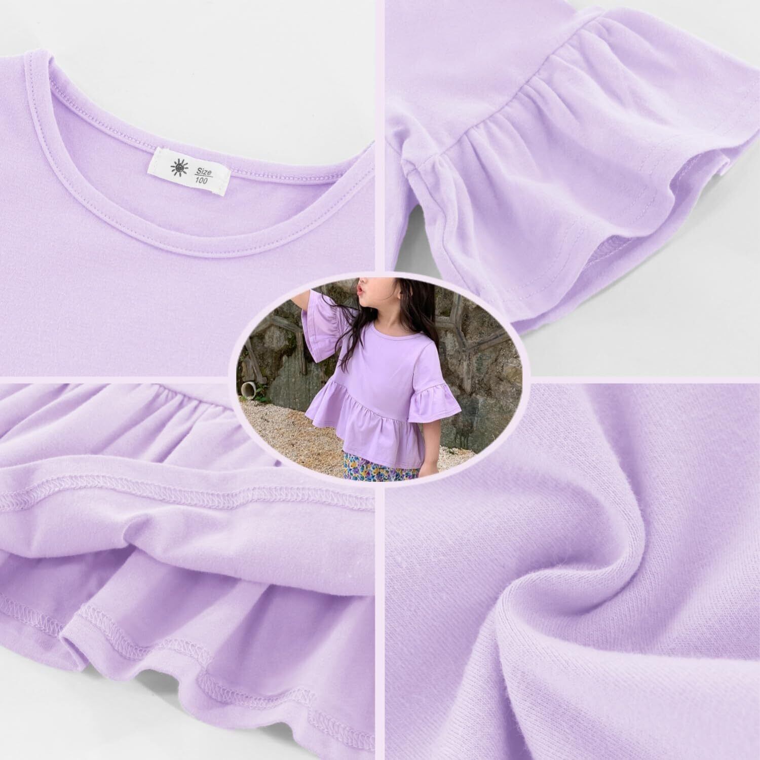 ひらひらのフリル袖が可愛い パフスリーブとフリル裾でお子様の可愛さを引き出してくれました。たくさんのキッズの中でもダントツで目立せ!ドレスのようなデザインはワンポイントです。散歩、海水浴、ピクニック、旅行など、オシャレな夏を楽しんで!
