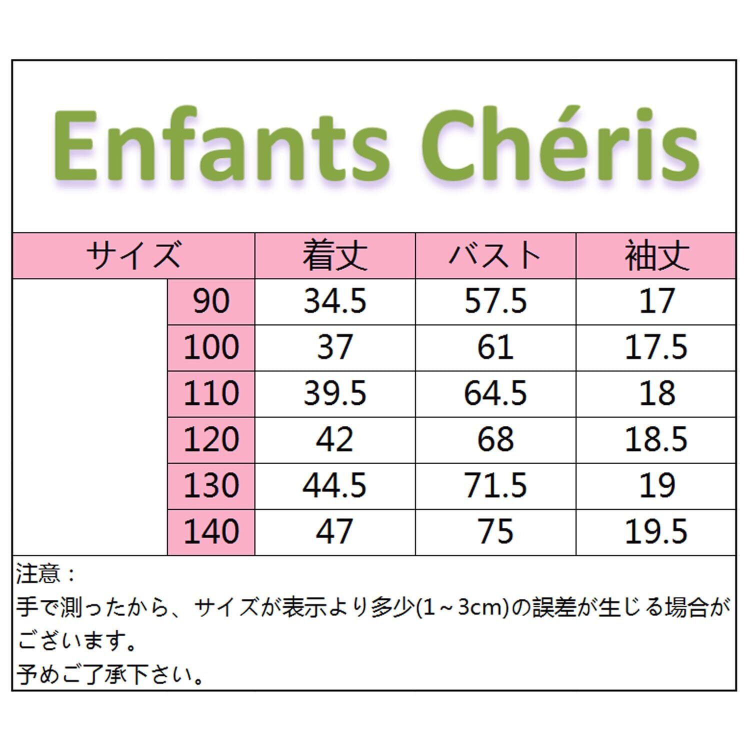 [Enfants Chéris] 子供服 女の子 半袖tシャツ 綿 夏服 ガールズ トップス Aライン ドレス ワンピース フリル裾 パフスリーブ 可愛い お洒落 ルーズ ゆったり 90-140