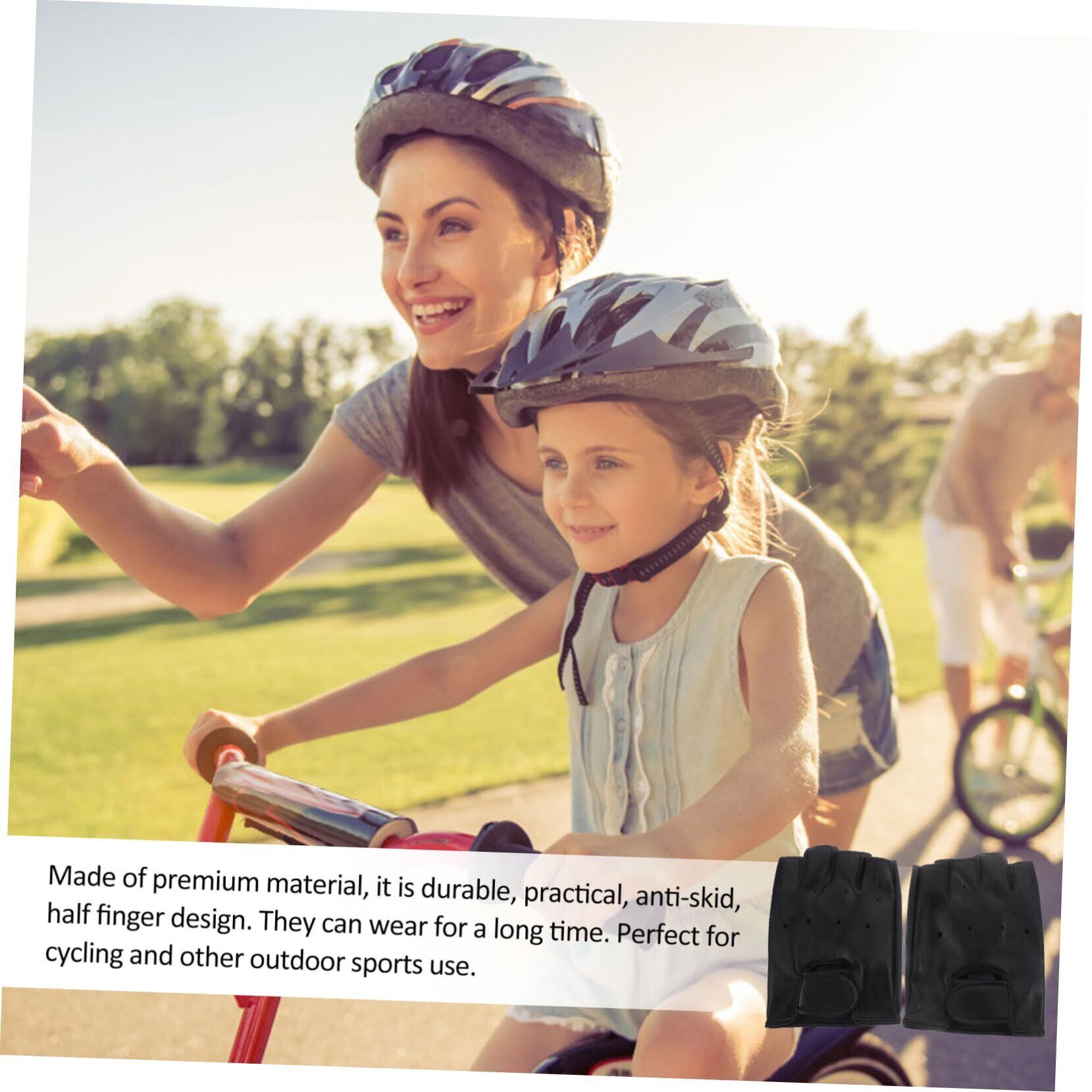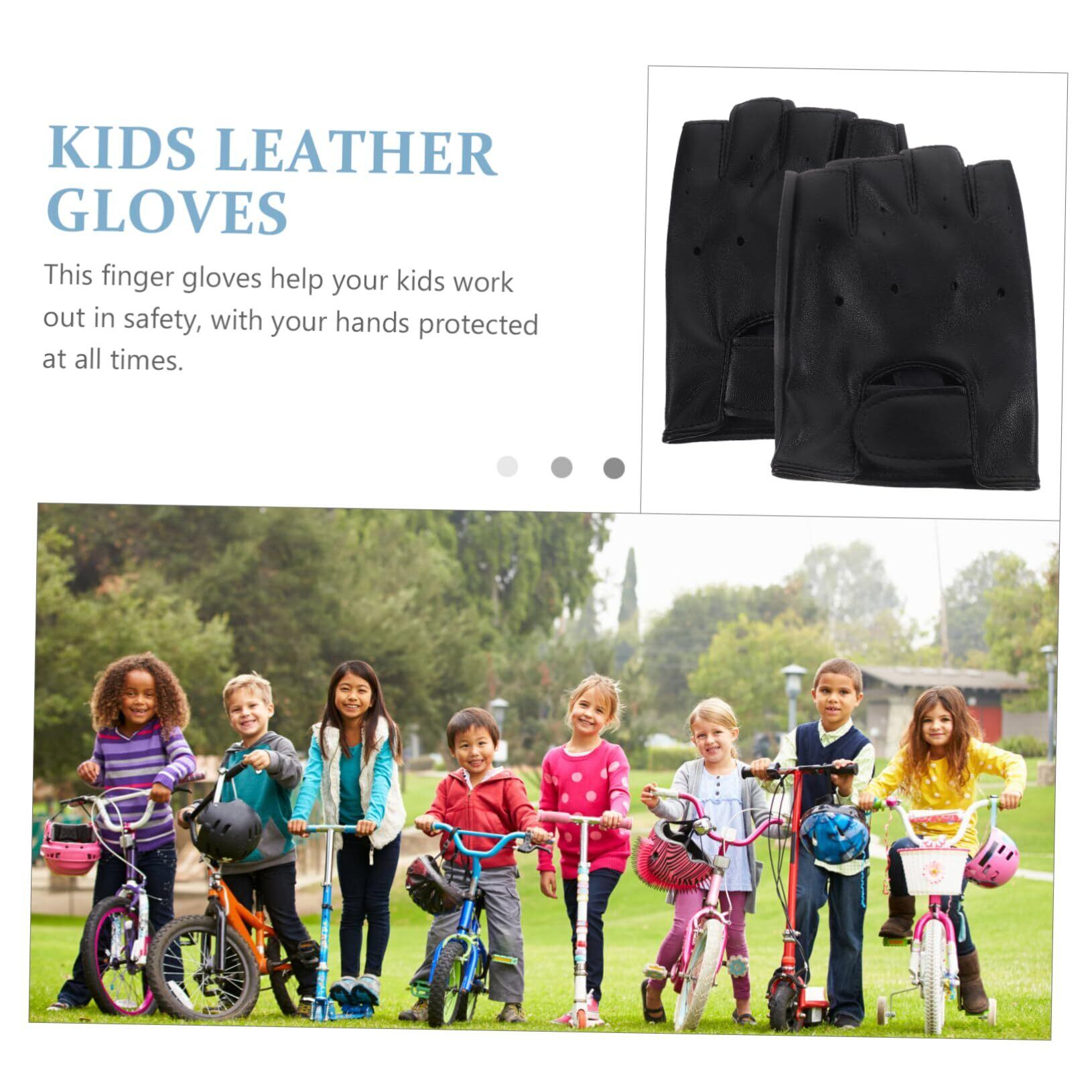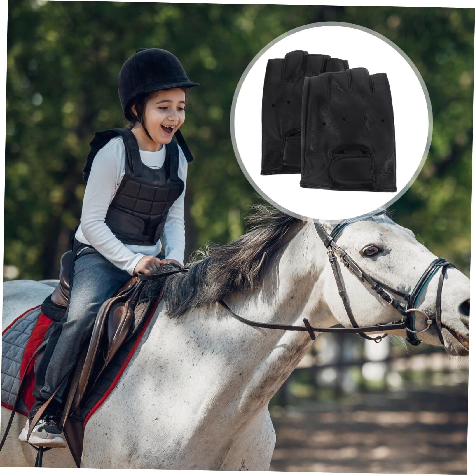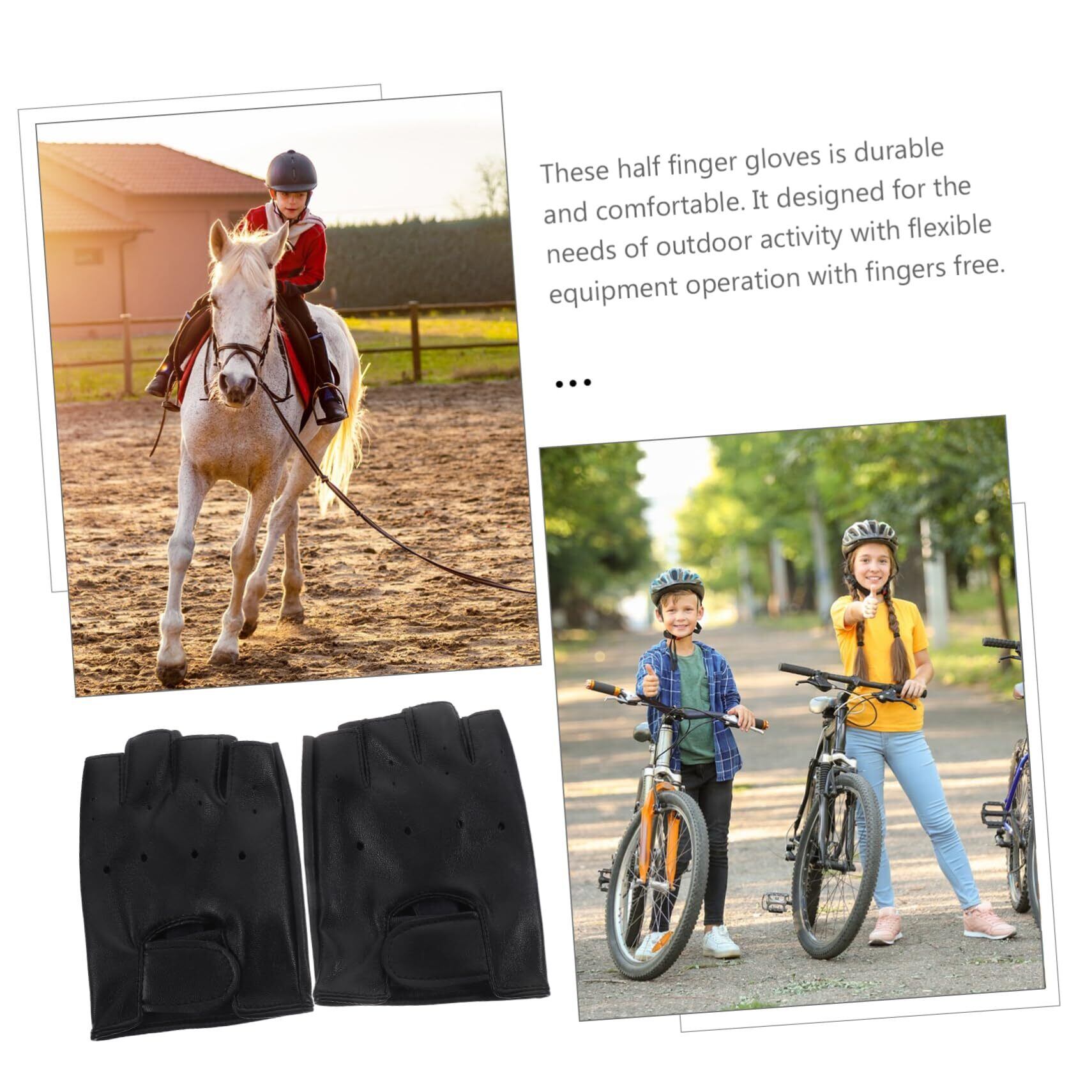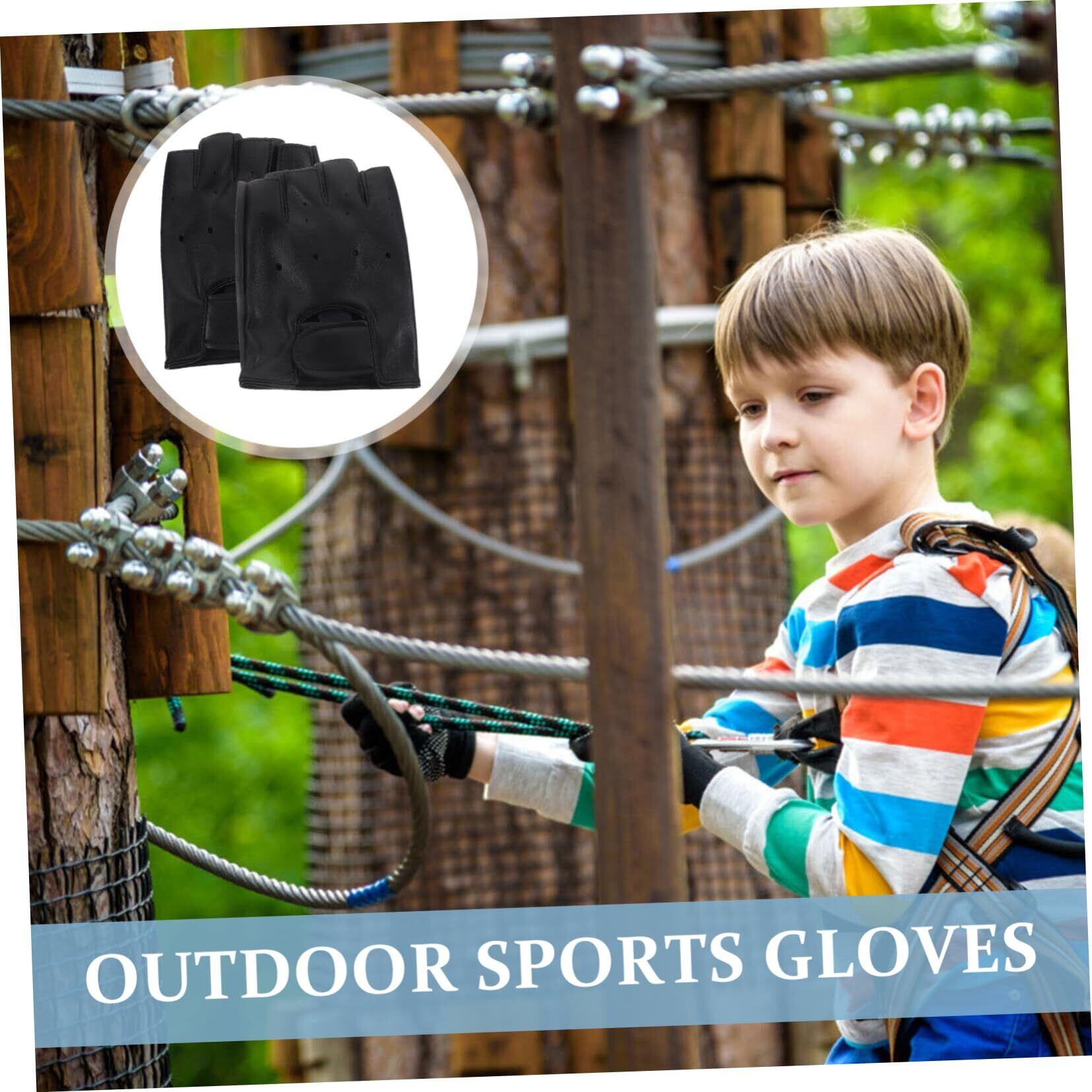 DEARMAMY 1 ペア 子供の革手袋 子供用手袋 子供乗馬手袋 ハーフフィンガーグローブ Black